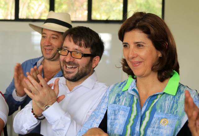 Türk İşbirliği ve Koordinasyon Ajansı Başkanlığı (TİKA) tarafından Kolombiya`da, Briceno kenti kırsalındaki Orejon mezrasına yaptırılan okulun açılışına Kolombiya Dışişleri Bakanı Maria Angela Holguin, (Sağda) TİKA Bogota Program Koordinatörü Doç. Dr. Mehmet Özkan (Ortada) ve Briceno Belediye Başkanı José Danilo Agudelo Torres katıldı.