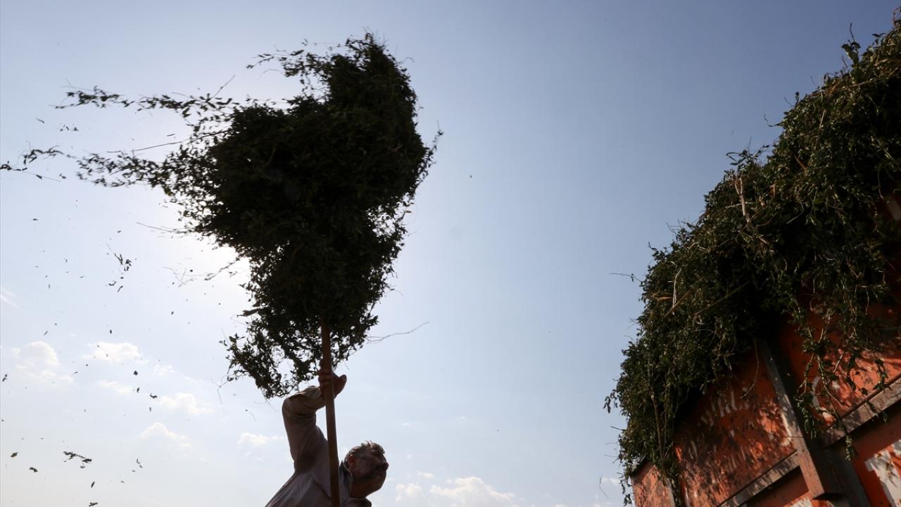 Şimdilerde sezonun son biçiminin yapıldığını aktaran Yılmaz, "Nane tarlada traktörle biçildikten sonra renk alması ve kuruması için toprağa seriyoruz. Aynı yerde bıraksak rutubetten dolayı karardığı için başka yere taşıyoruz. Tarladan çıkardıktan sonra temiz bir yere serip, tırpanla kuruması için silkeleme yapıyoruz." ifadelerini kullandı.
