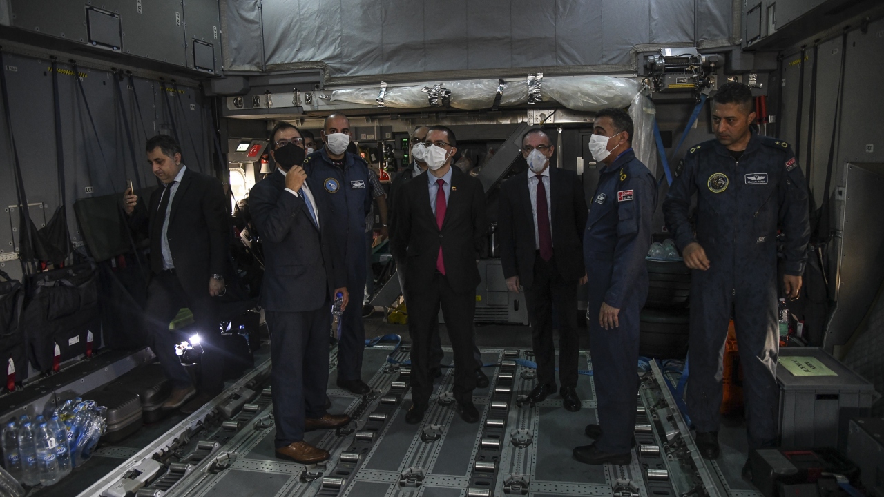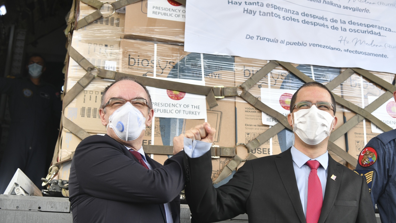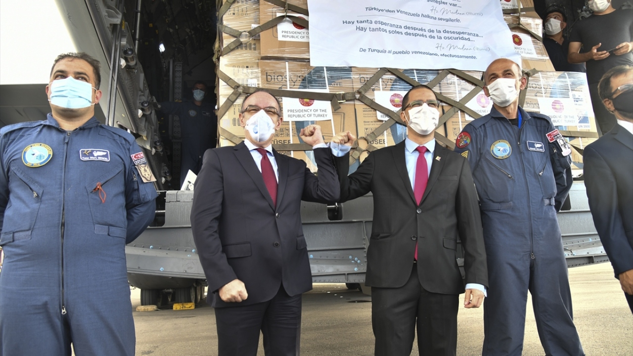 Dışişleri Bakanı Arreaza da "Kovid-19 ile mücadele için 15 tondan fazla malzeme teslim alıyoruz. Türkiye`nin Cumhurbaşkanı Recep Tayyip Erdoğan`a, Türk halkına ve hükümetine müteşekkiriz." dedi.