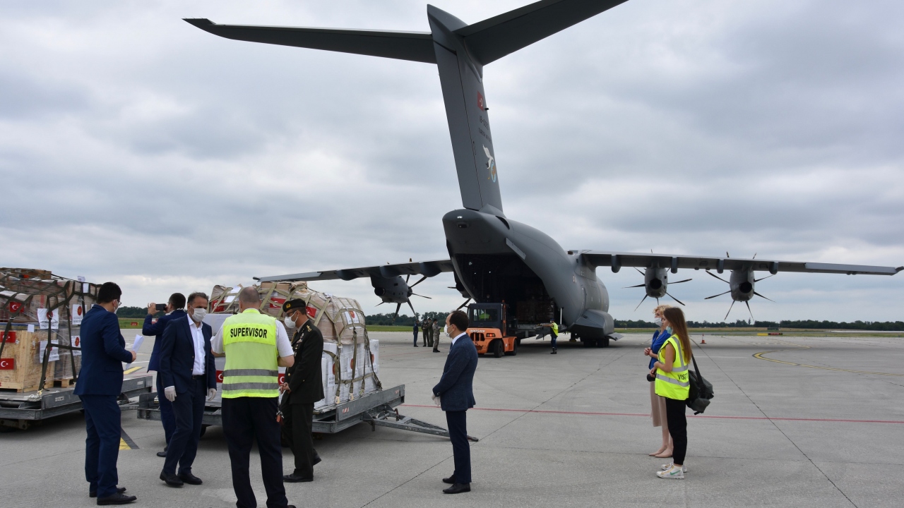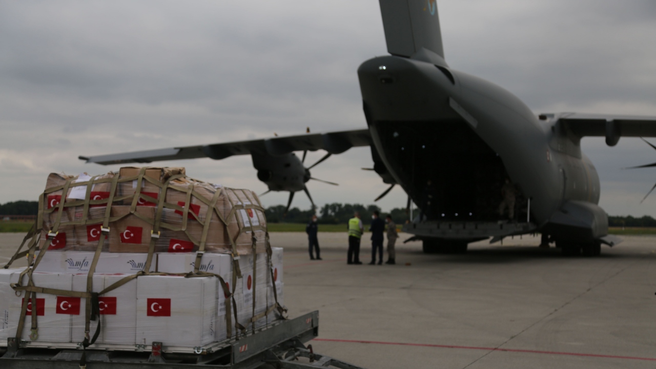 Türkiye'nin, yeni tip koronavirüs salgını nedeniyle ciddi sıkıntıların yaşandığı ve imkanların kısıtlı olduğu Sırbistan'ın Sancak bölgesine gönderdiği tıbbi yardım malzemelerini taşıyan uçak başkent Belgrad'a indi.
