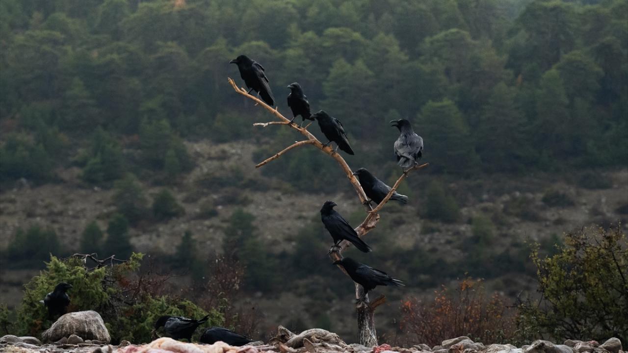Görevliler tarafından istasyonun önüne bırakılan leşler, günün ilk ışıklarıyla birlikte akbaba başta olmak üzere birçok leşçil kuş türünü bölgeye çekiyor.
