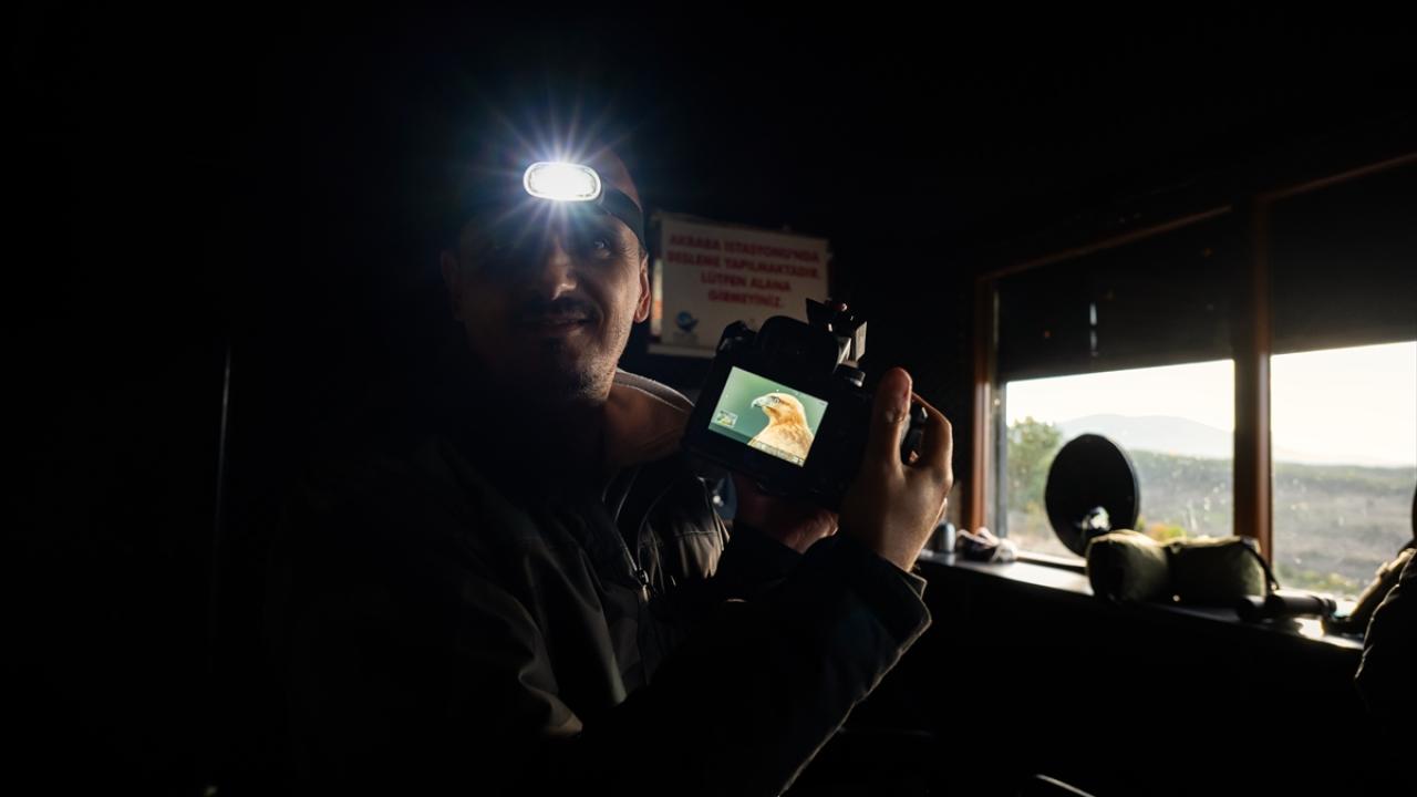Leşçil kuş türlerinin doğal ortamda gözlemlenebilmesi amacıyla kurulan istasyonda, ziyaretçiler sabahın erken saatlerinde kamuflaj görevi gören yapıya giriyor.