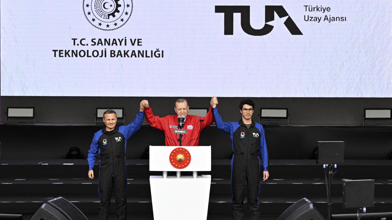 Erdoğan, "Türkiye`nin insanlı ilk uzay görevine çıkacak arkadaşımız Uluslararası Uzay İstasyonu`nda 14 gün kalacak. Uzay yolcumuz bu görevde, ülkemizin kıymetli üniversite ve araştırma kurullarının hazırladığı 13 farklı deney gerçekleştirecek. Yedek adayımız da bir yörünge altı uçuşu gerçekleştirerek, eğitimini pekiştirecek. Uzay yolcumuzun uzayla buluşma zamanı, 2023 yılının son çeyreği olarak planlanıyor. Vakit, geldi. Türkiye`nin gücünün ve kararlılığının sembolü olacak bayrağımızı uzayda gururla taşıyacak, uzay yolcularımızı tanıma vakti de geldi" dedi.