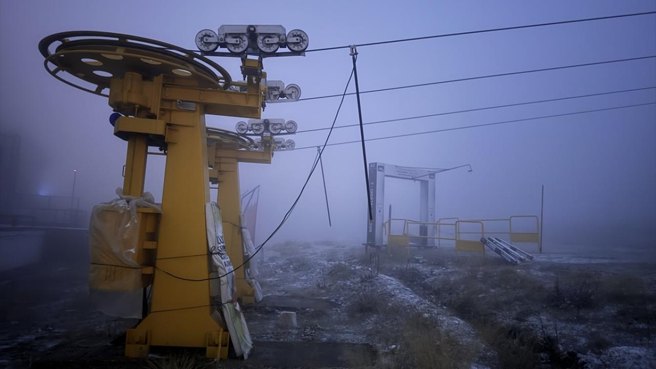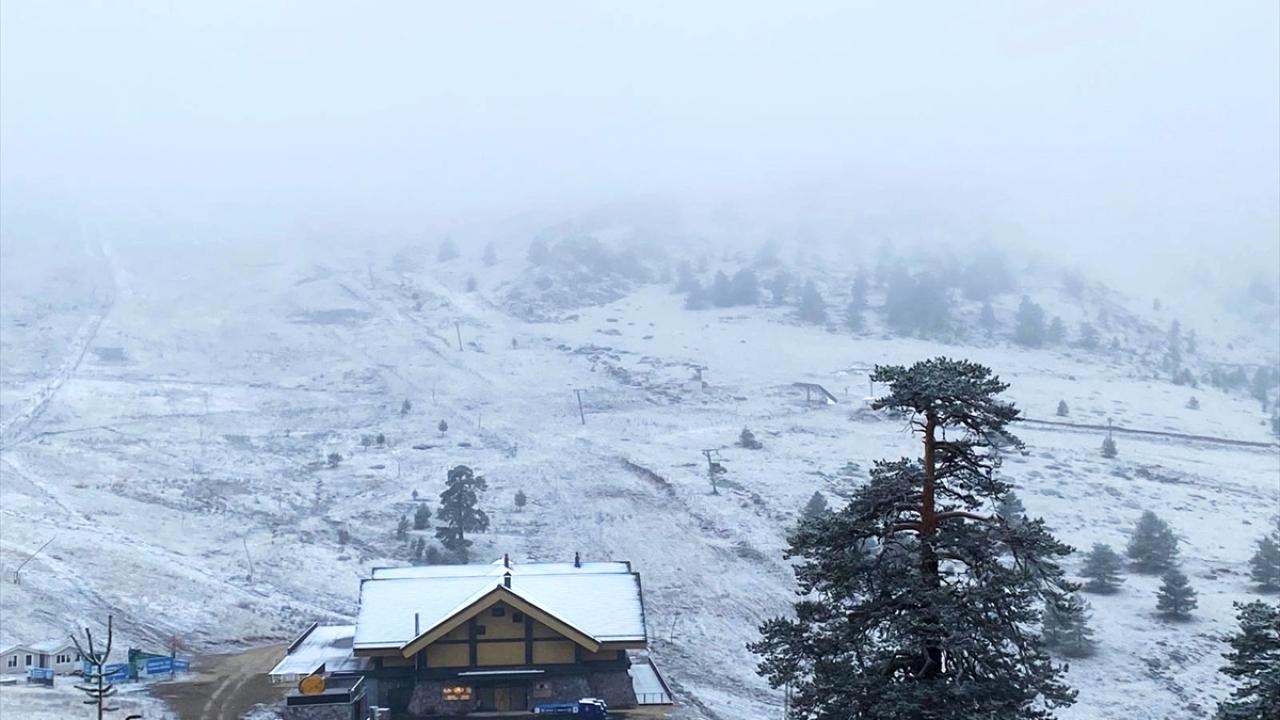Kar yağışıyla kayak merkezinin çevresi beyaza büründü.