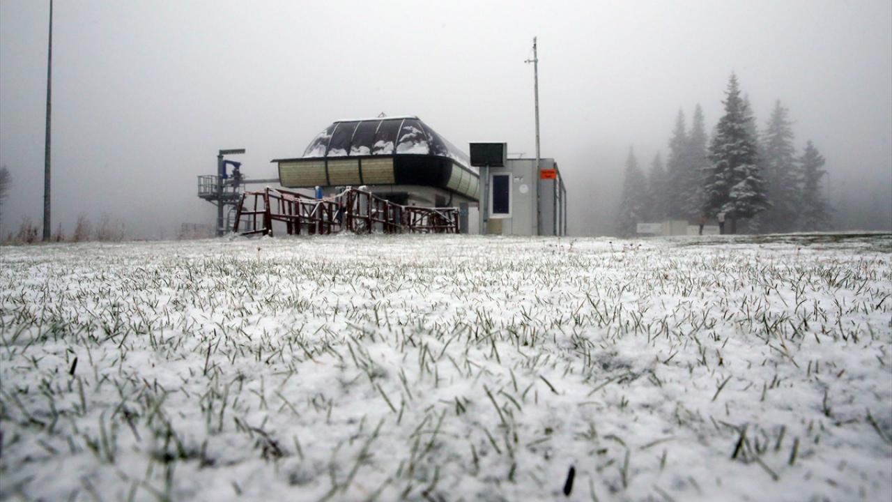 Kars`ın Sarıkamış ilçesine mevsimin ilk karı yağdı, Sarıkamış Kayak Merkezi beyaza büründü.