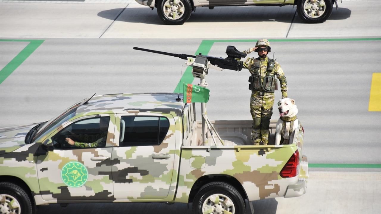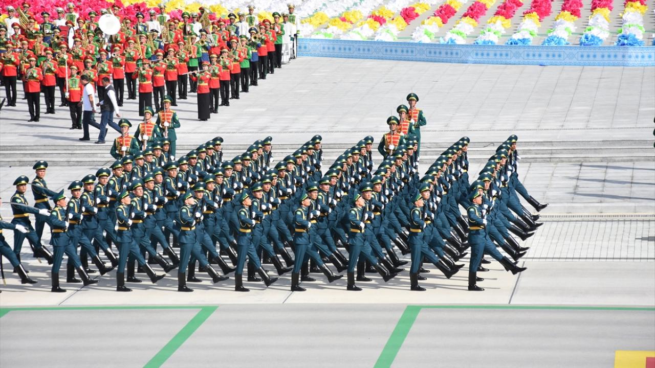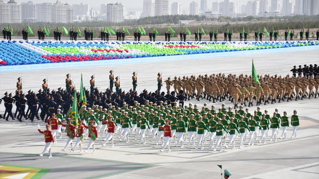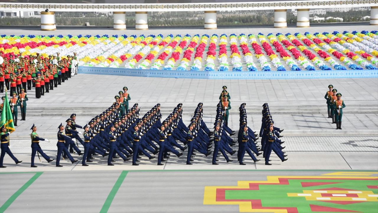 Askeri geçit töreni, milli marşın okunmasıyla başladı. Bayraktar TB2’nin yer aldığı Türkmenistan silahlı kuvvetleri envanterindeki silahlar ve teçhizat, tören alanından geçerken, ülkenin askeri birlikleri disiplin görevlerini yerine getirme konusundaki yeteneklerini ve yüksek becerilerini gösterdi.