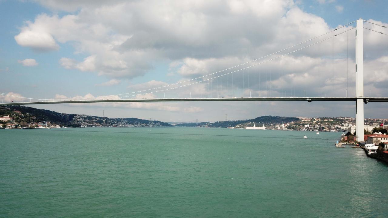 Turkuaz rengiyle muhteşem bir görsel oluşturan İstanbul Boğaz`ı havadan görüntülendi.
