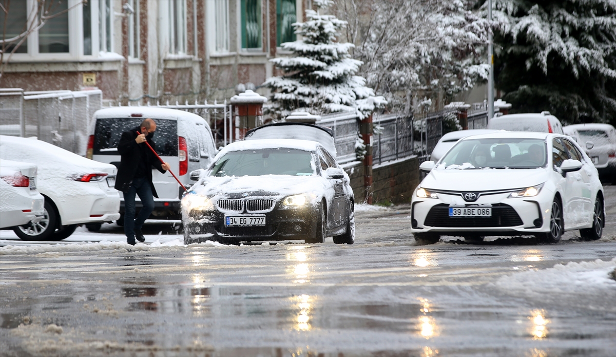 Meteoroloji Genel Müdürlüğünce "turuncu" uyarı verilen Kırklareli'nde kar yağışı etkili oluyor. Kent merkezi kısa sürede beyaza büründü.