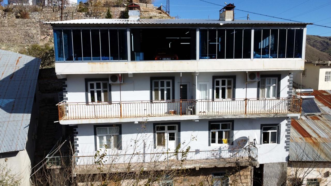 Mihrap Dağı eteklerinde, bir vadinin yamacına kurulan evlerinin kot farkından dolayı 4. kattaki terasta oluşturdukları garajda araçların bakımını yapan kardeşler, günlerinin büyük bölümünü burada geçiriyor.