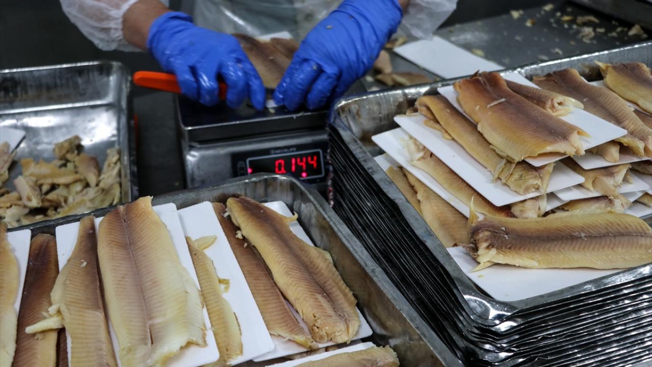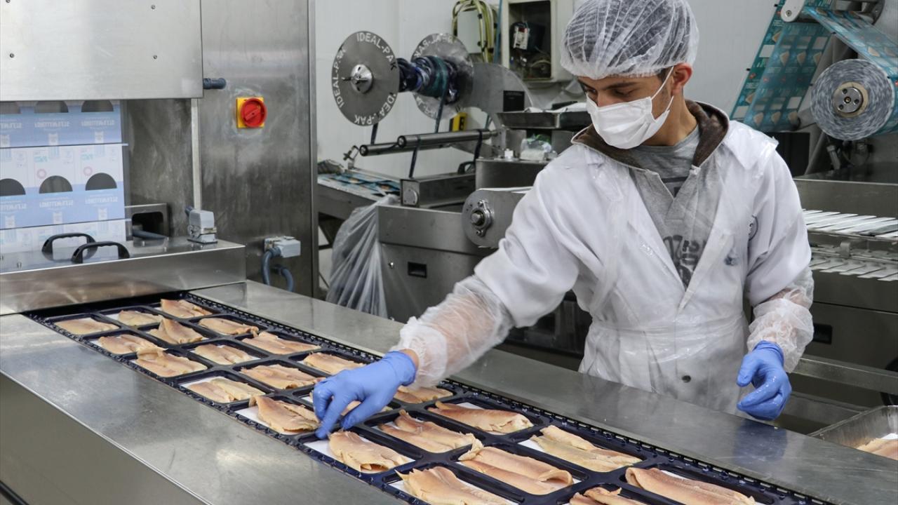 Balıklar, işleme tesisinde temizlenip ayıklandıktan sonra iç ve dış piyasa için talebe göre paketleniyor.