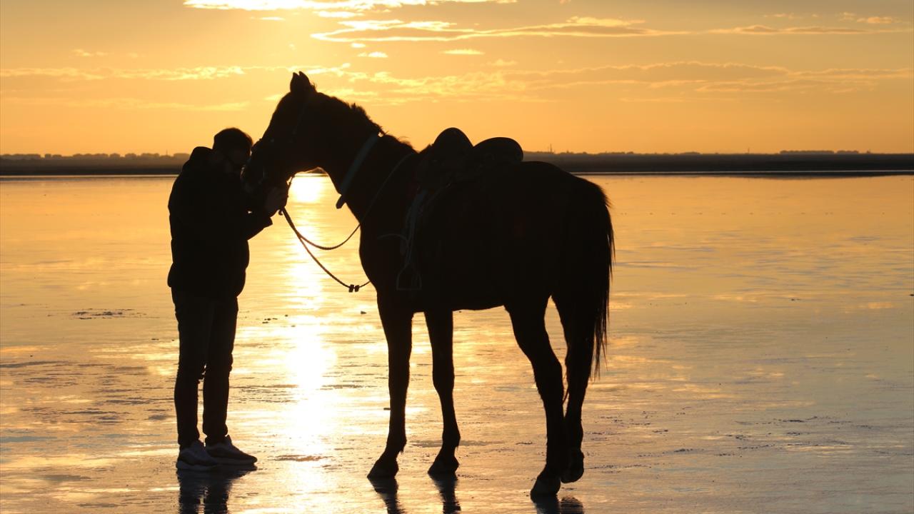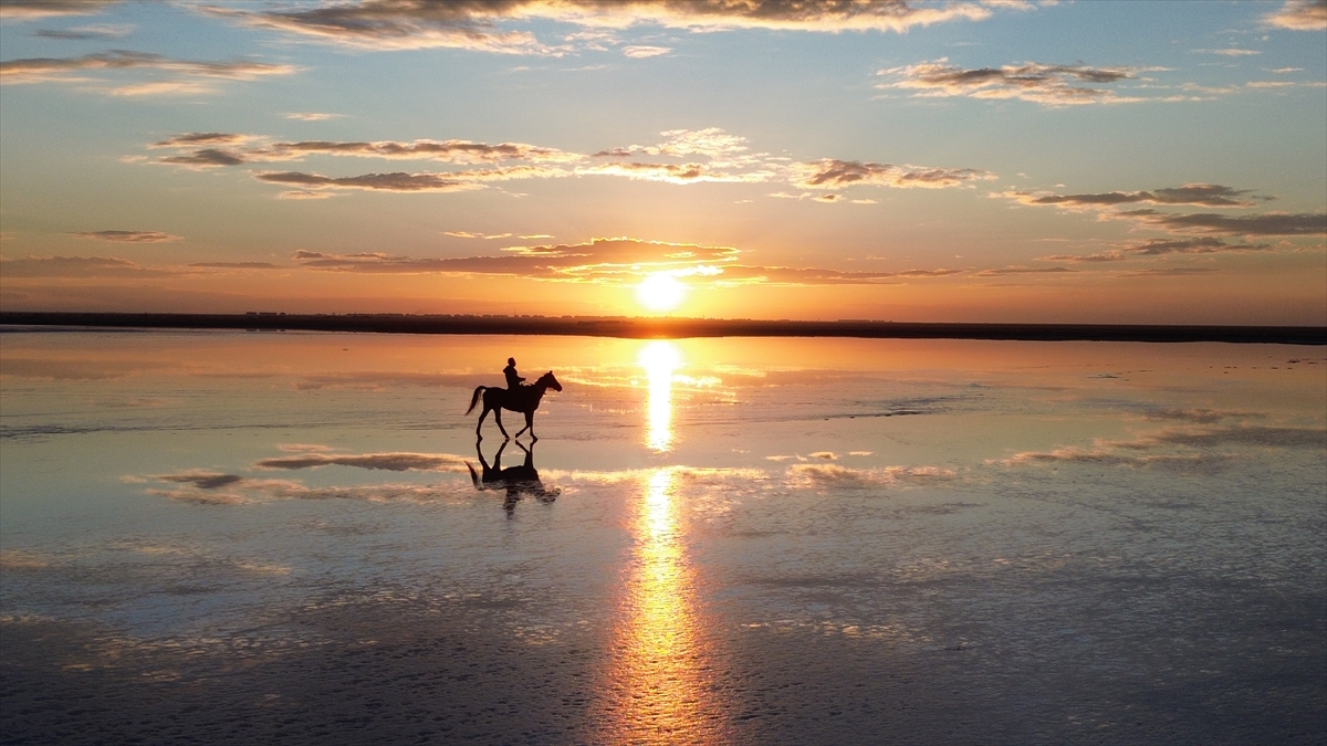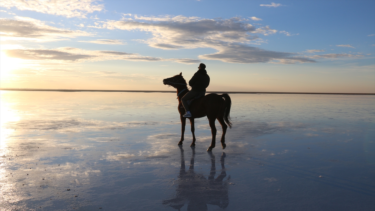 Özellikle bembeyaz gölün üzerinde atlarla safari yaparken gün batımında kızıl bir görüntü oluştuğunu belirten Altan, şunları kaydetti: