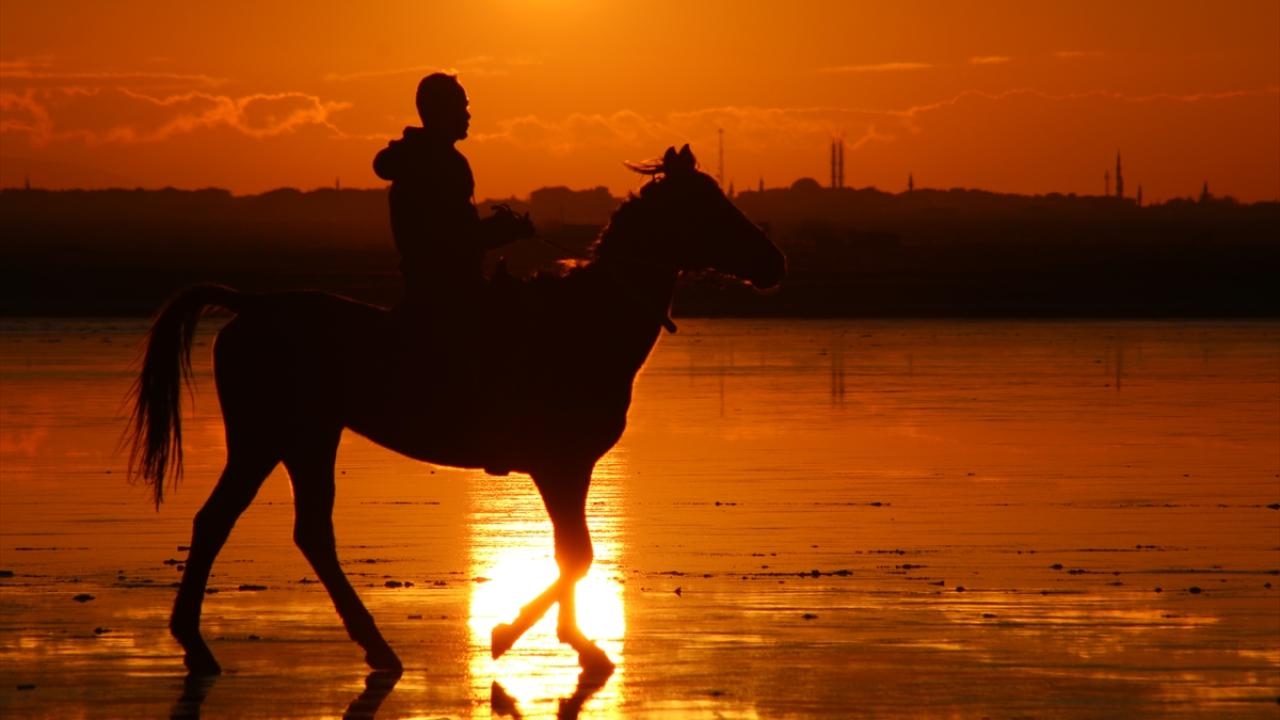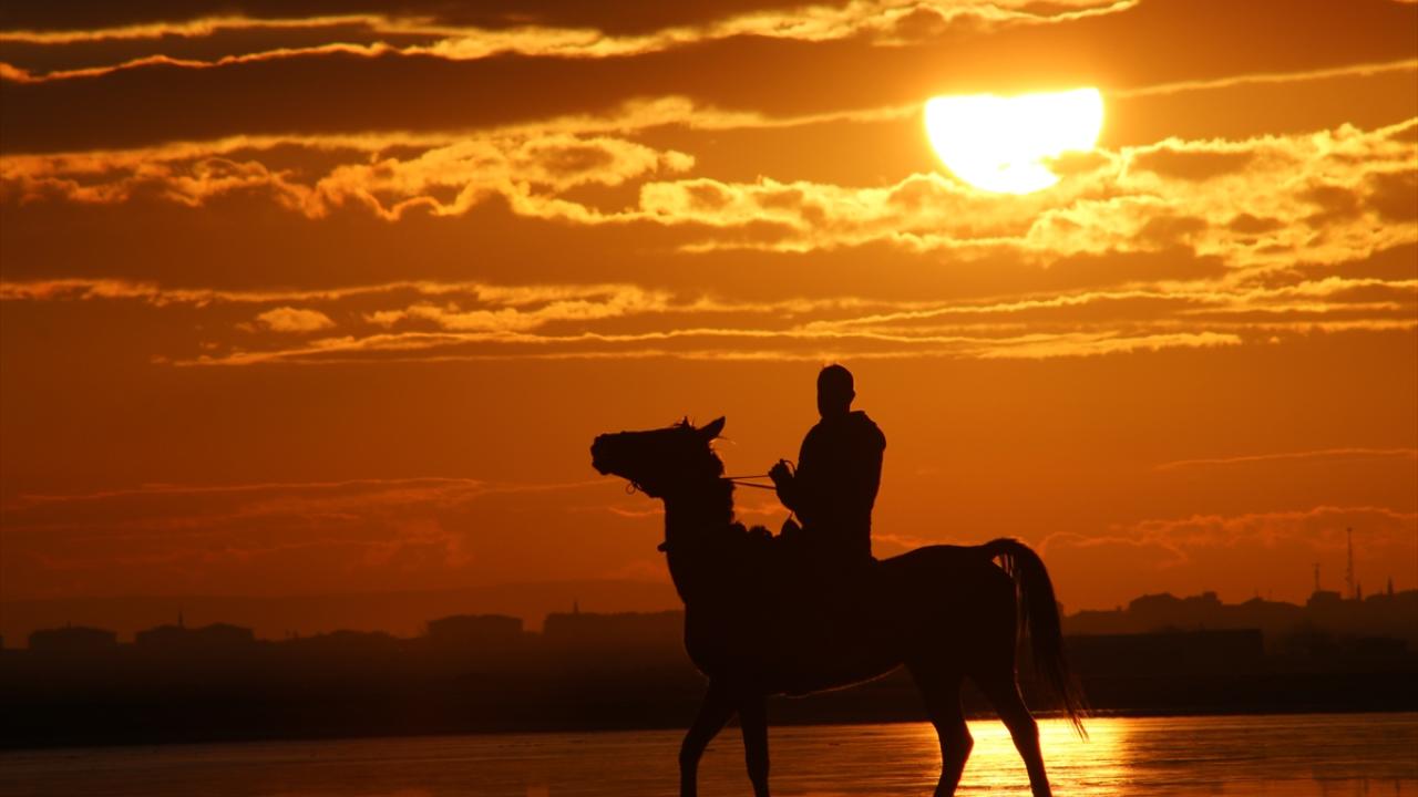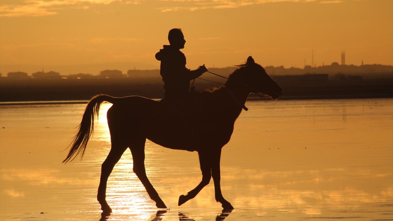 Bölgeye gelen ziyaretçiler at ve ATV ile safari yaparak, gün batımında oluşan güzel görüntüleri fotoğraflıyor.