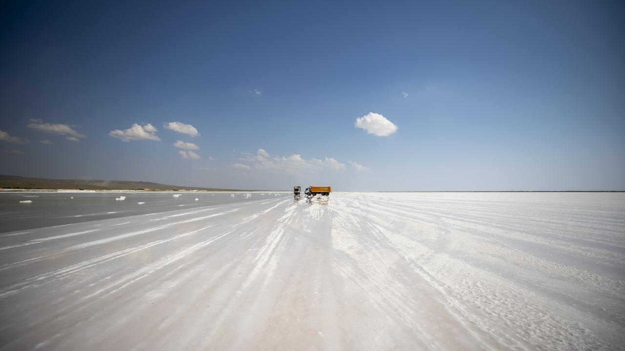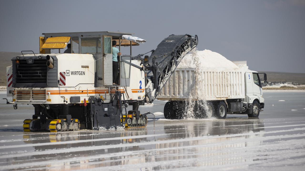 Türkiye'nin tuz ihtiyacının önemli kısmının karşılandığı Tuz Gölü'nde suların çekilmesiyle birlikte yaklaşık 3 ay süren tuz hasadı devam ediyor.