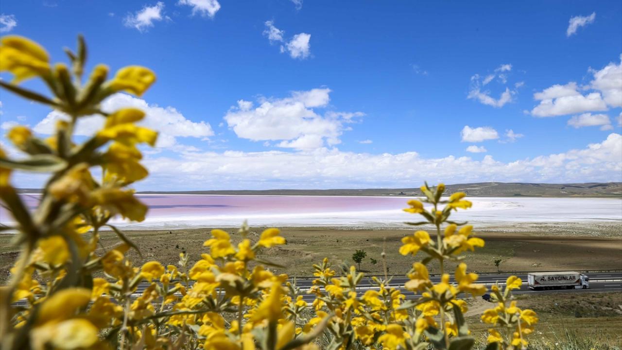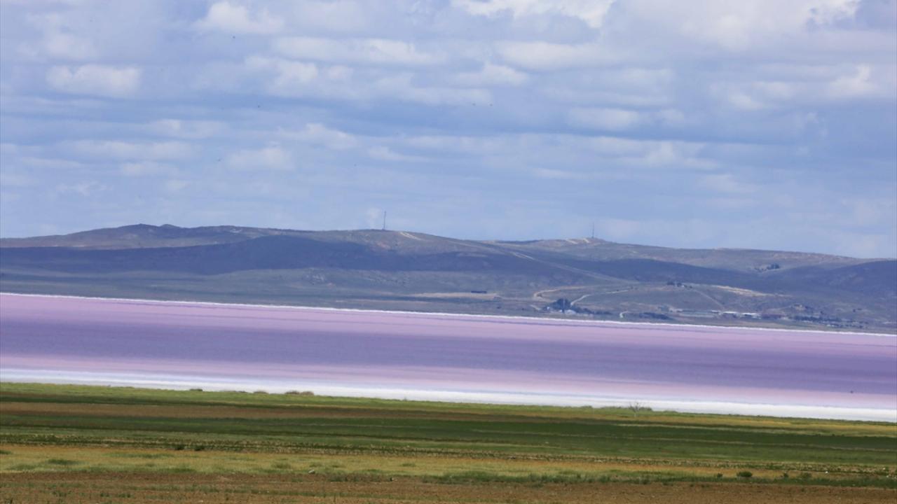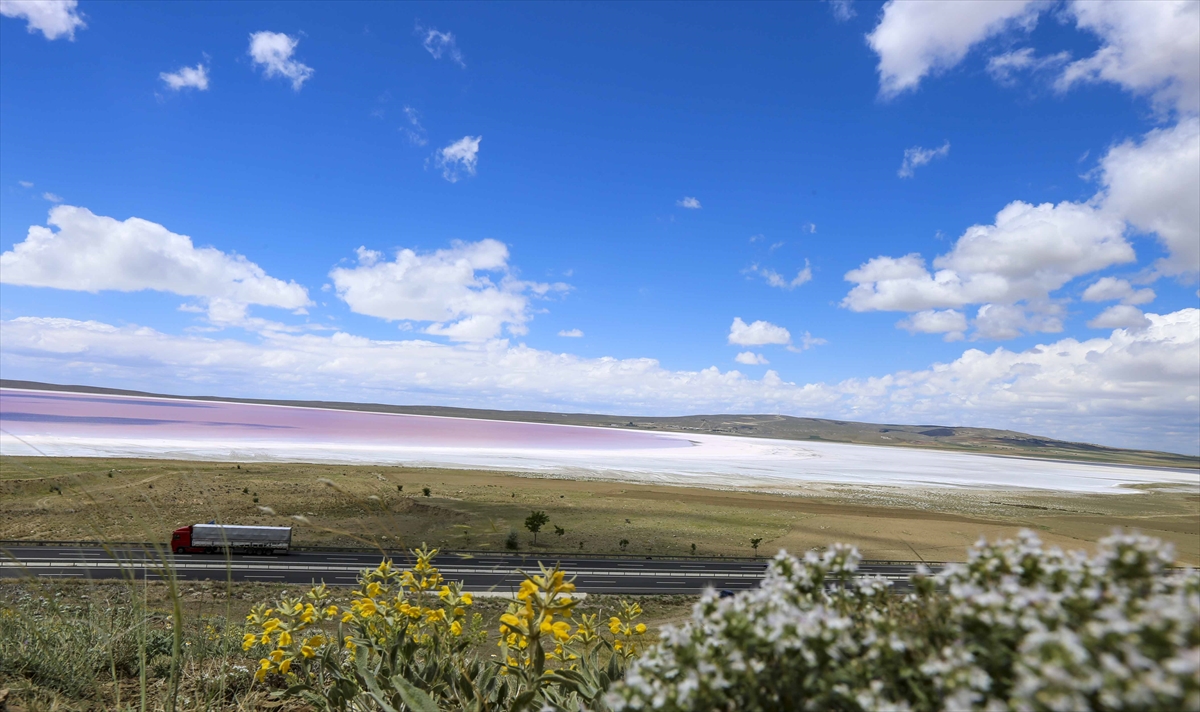 Kışın buz mavisi, yazın ise beyaz rengiyle dikkat çeken Türkiye'nin ikinci büyük gölü olan Tuz Gölü, ilkbahar aylarının sonlarında kırmızının tonları ve beyaz rengiyle farklı bir güzelliğe büründü.
