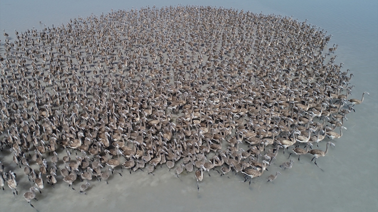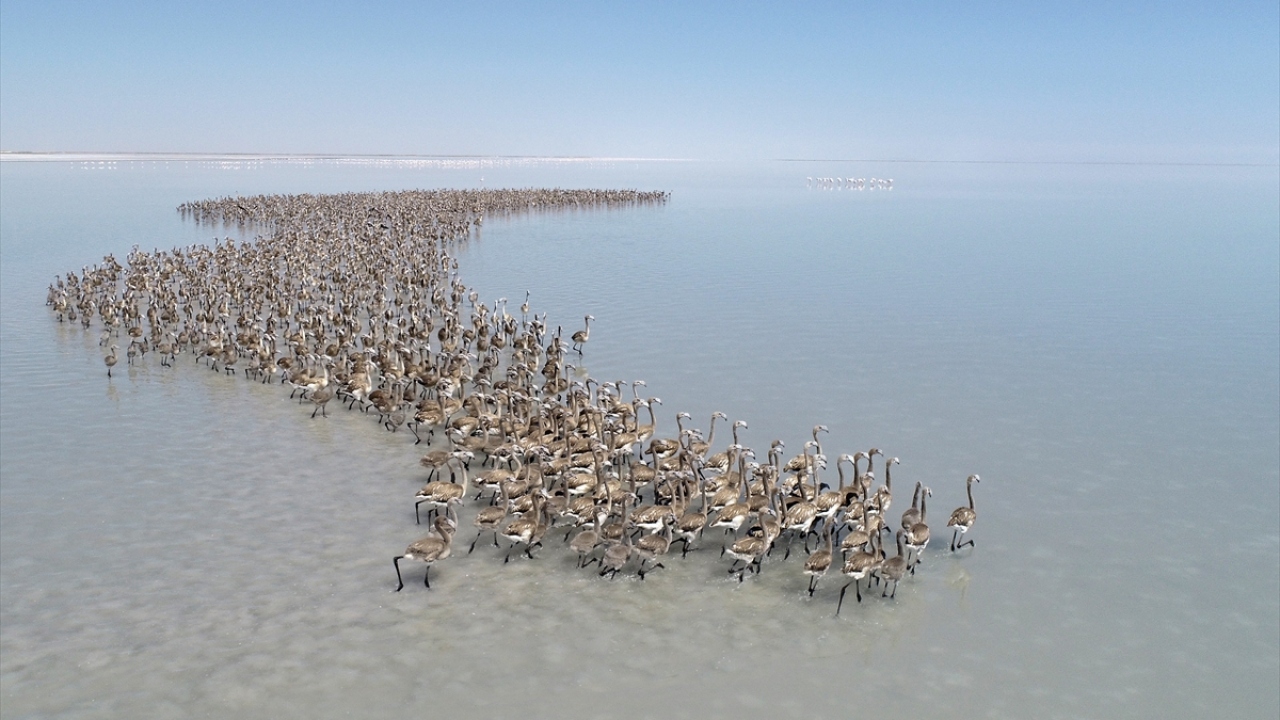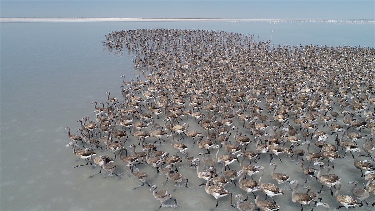 Dünyada flamingoların kuluçkaya yattığı en önemli sulak alanlar arasında bulunan Tuz Gölü'nde, kuluçkadan çıkan on binlerce yavru, adeta görsel şölen oluşturdu.