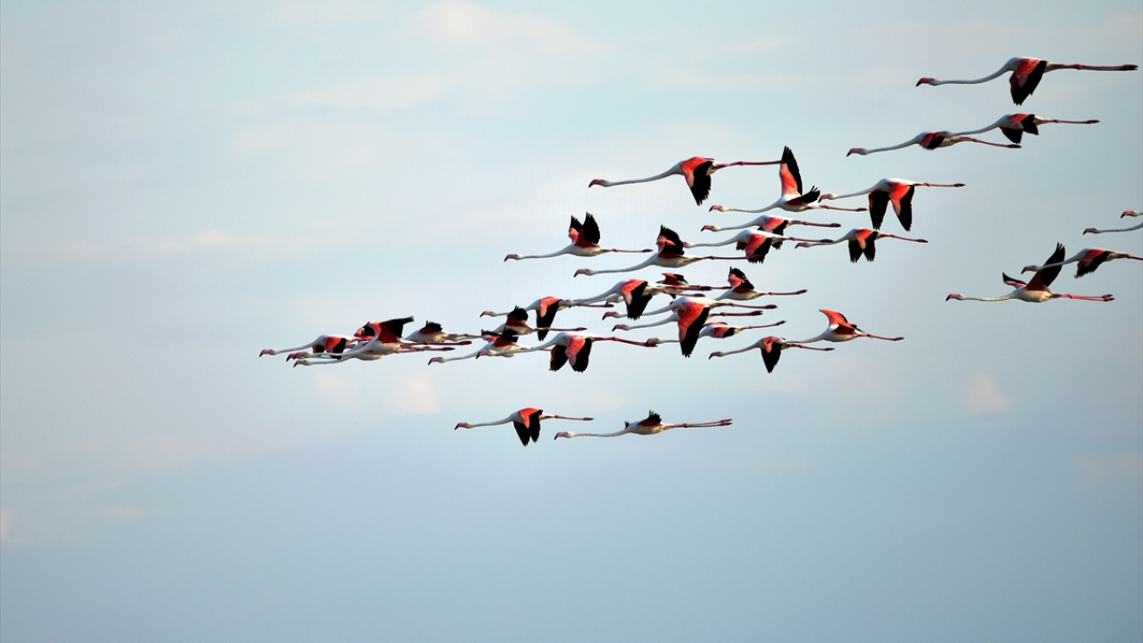 Sağlıklı bir şekilde gelişimlerini tamamlayan flamingolar, yuvalarını sonbaharda terk ediyor.