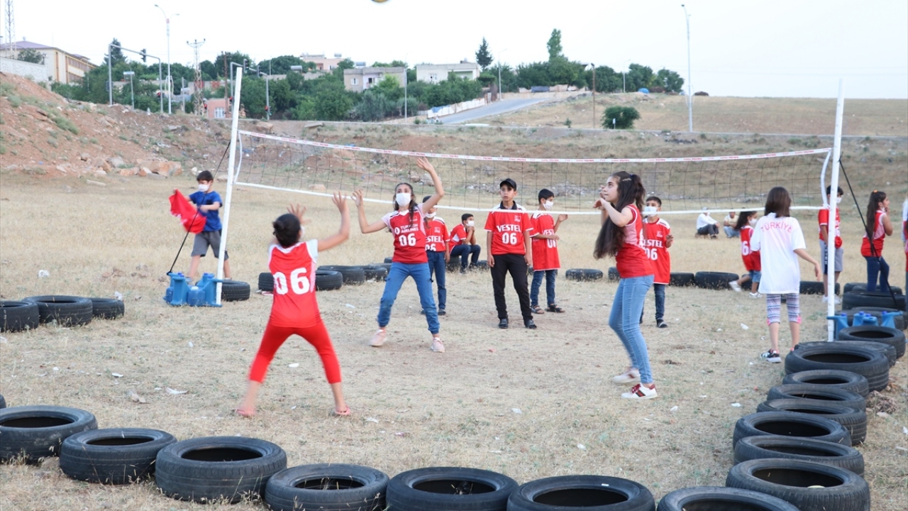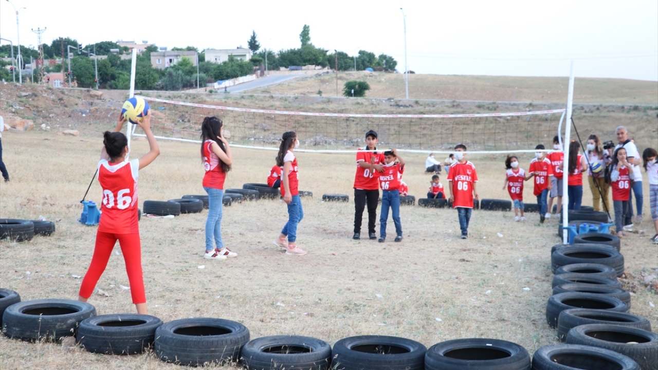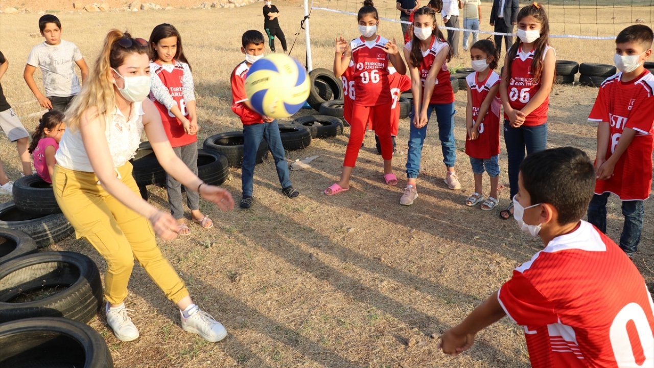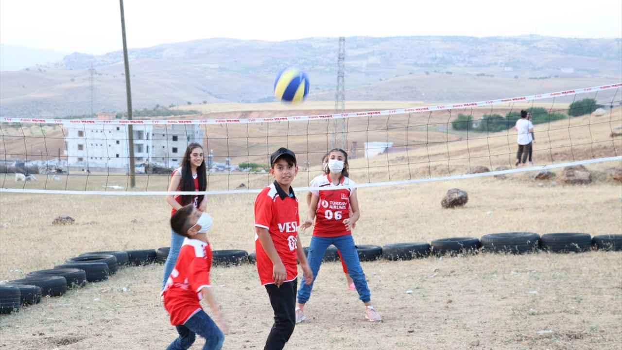 TVF, lastiklerden yaptıkları sahada voleybol oynayan Siirtli çocukları sevindirdi