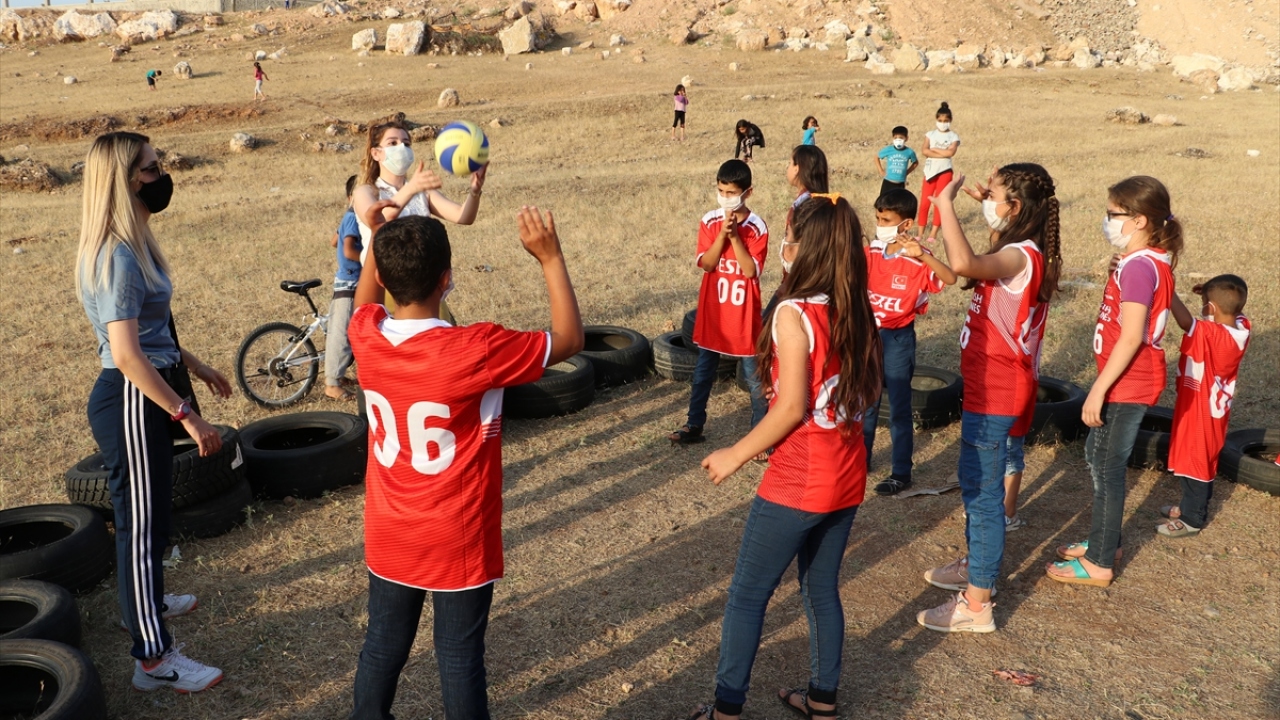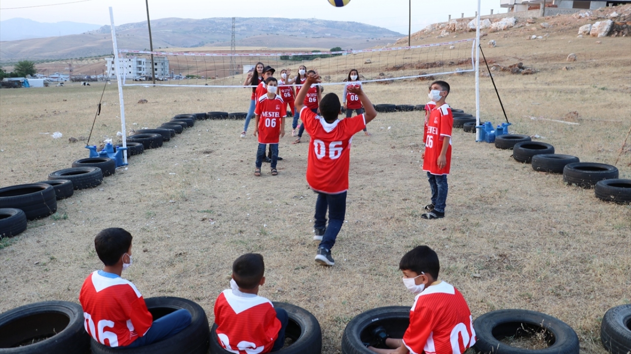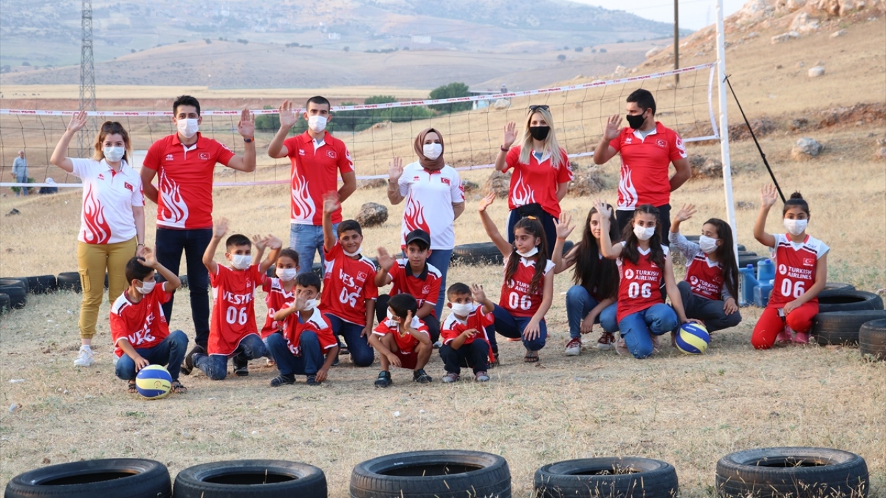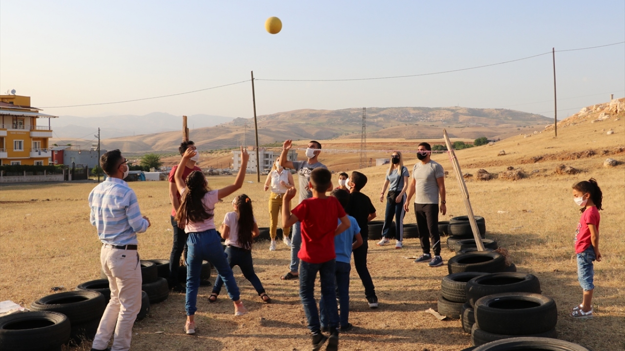 TVF, lastiklerden yaptıkları sahada voleybol oynayan Siirtli çocukları sevindirdi