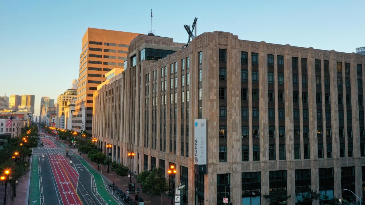 Twitter'ın San Francisco'daki merkezine yeni logosu yerleştirildi