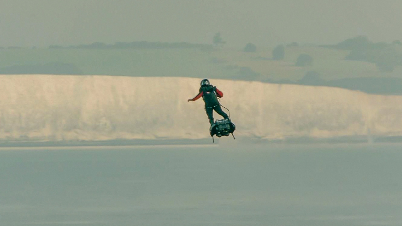 Fransız Franky Zapata, geliştirdiği jet motorlu uçan kaykay ile 35 kilometrelik kanalı geçerek hayalini gerçekleştirdi.