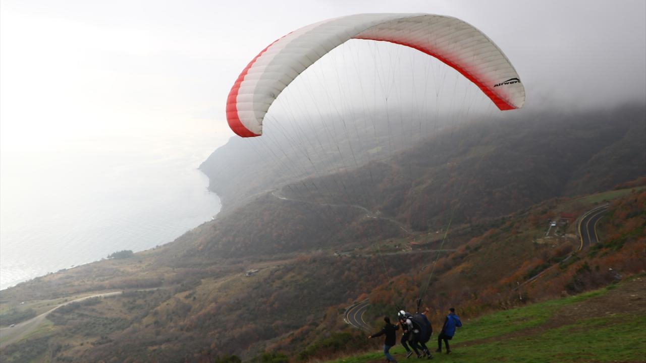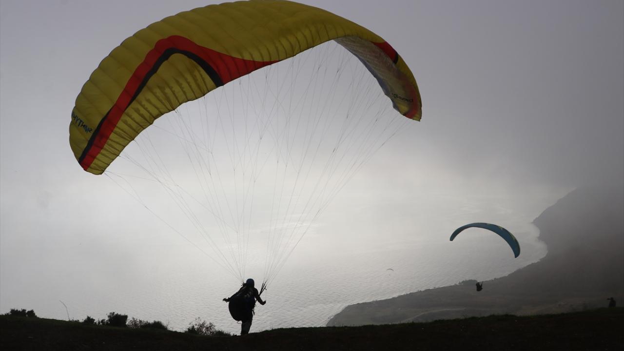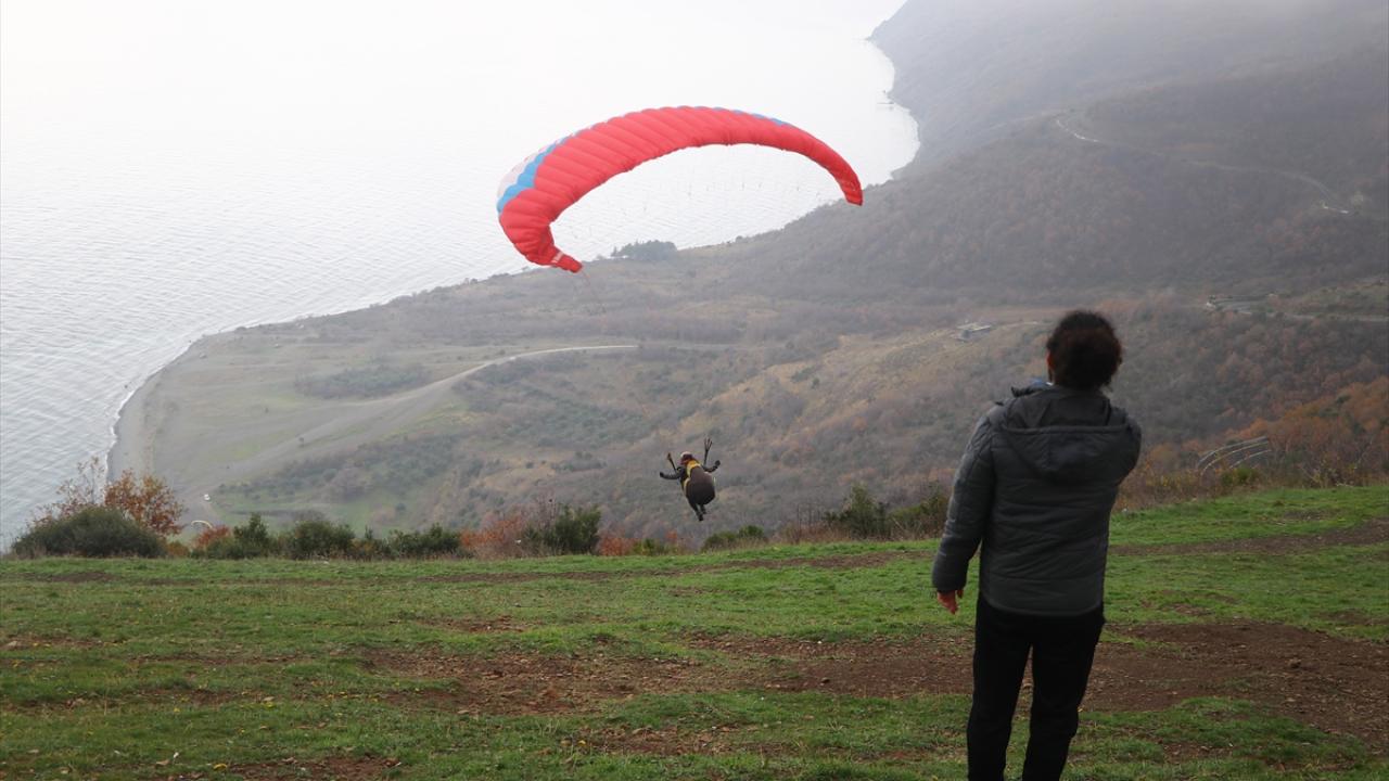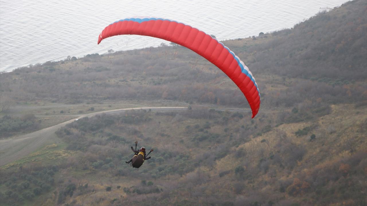 Adrenalin tutkunları, Marmara Denizi`ni ve Ganos Dağı`nın sunduğu güzellikleri gökyüzünden izledi.
