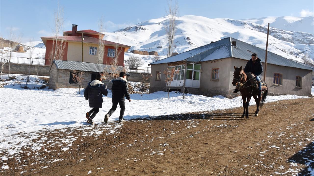 Ücretli öğretmen okulun bulunduğu köye atla gidiyor