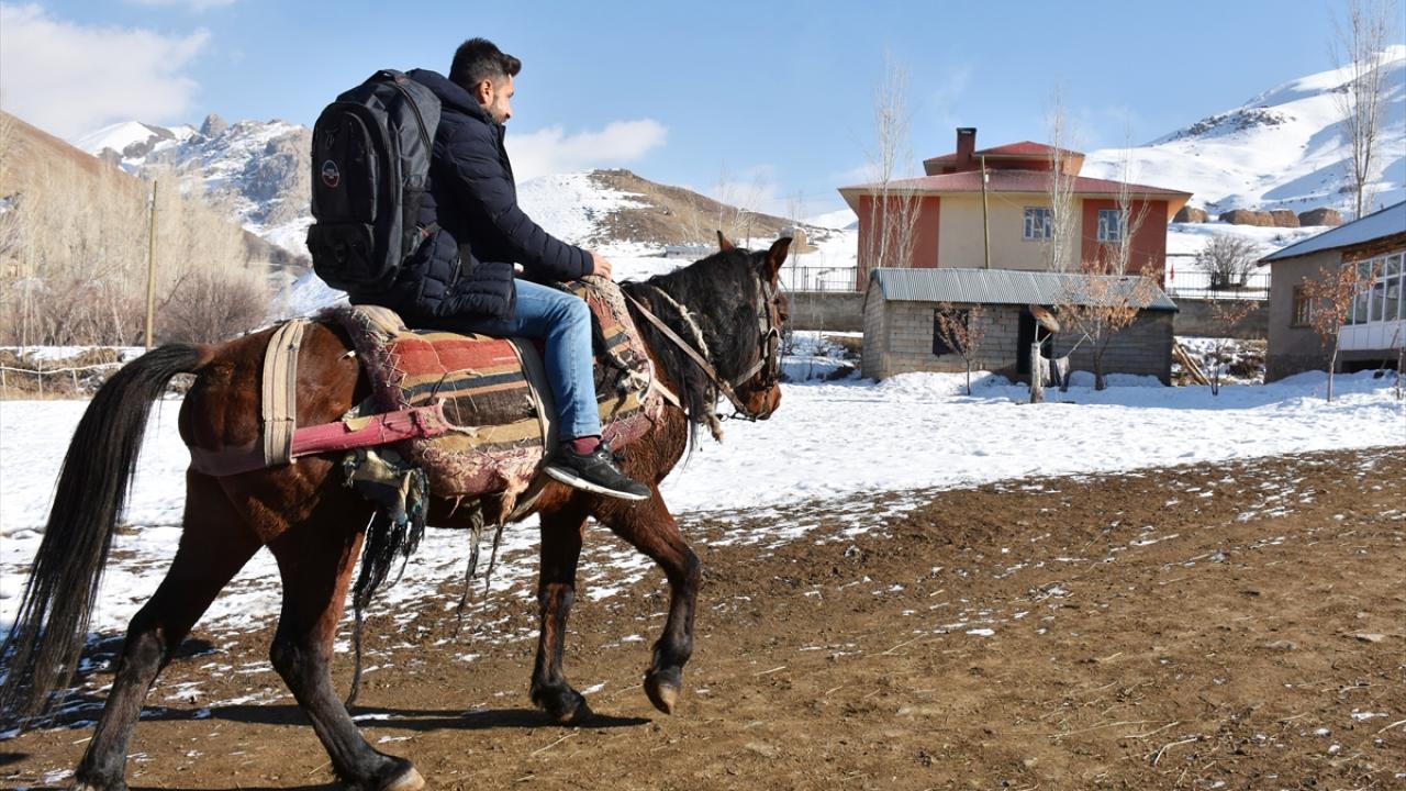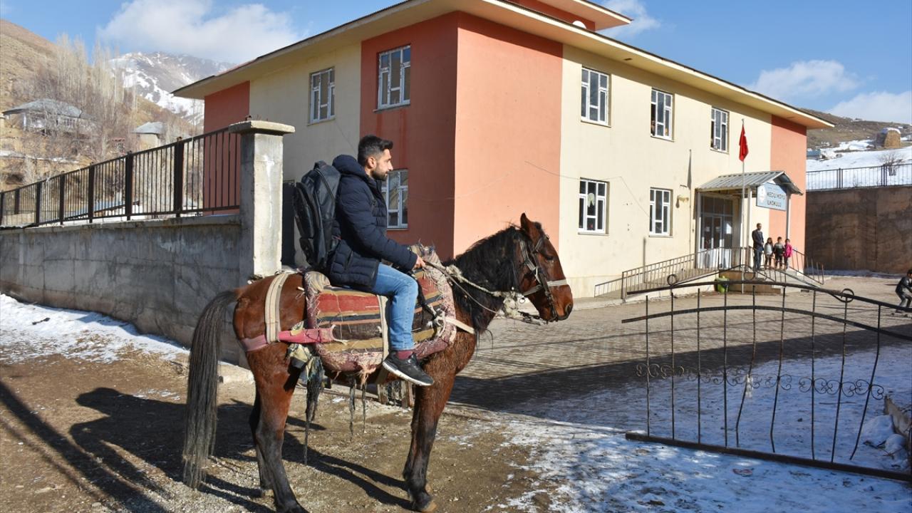Hakkari'nin Yüksekova ilçesine bağlı Bağdaş köyünde yaşayan ücretli öğretmen Musa Tavşan, ders verdiği okulun bulunduğu yaklaşık 10 kilometre mesafedeki köye atla gidiyor.