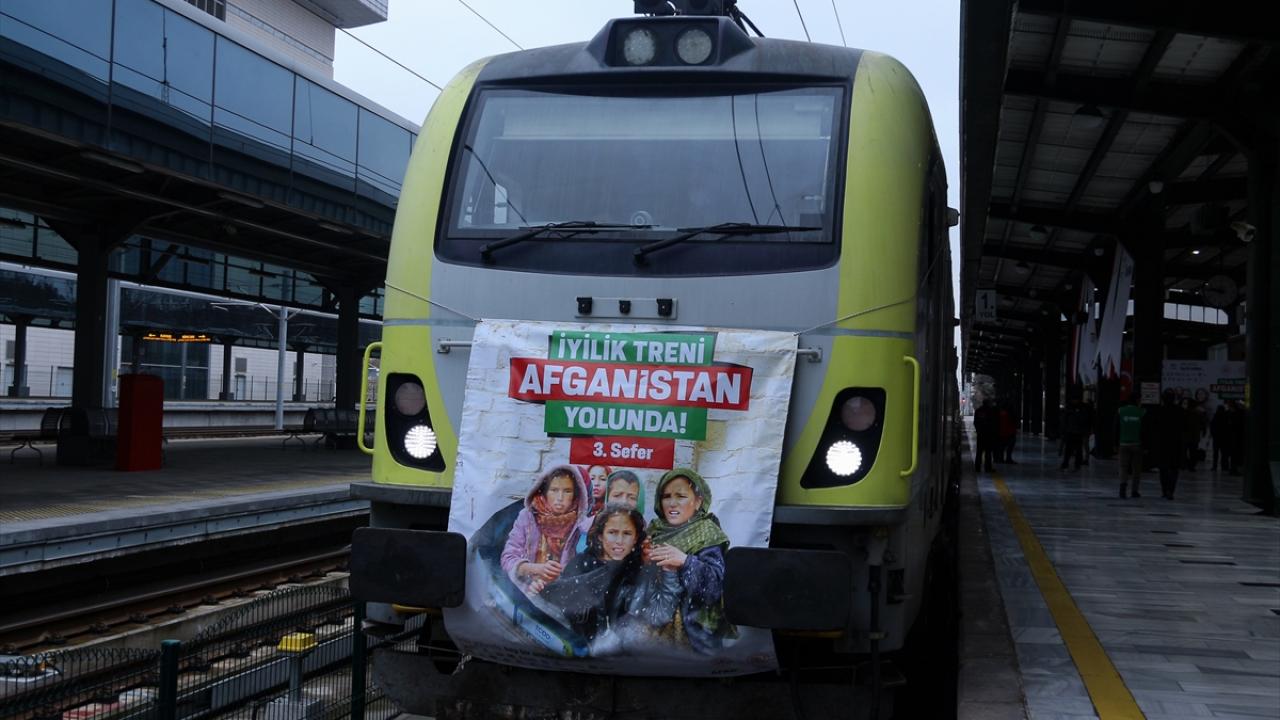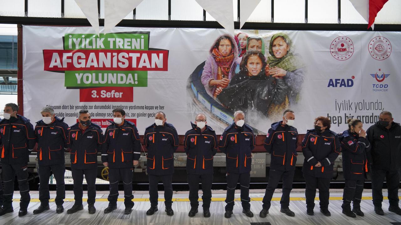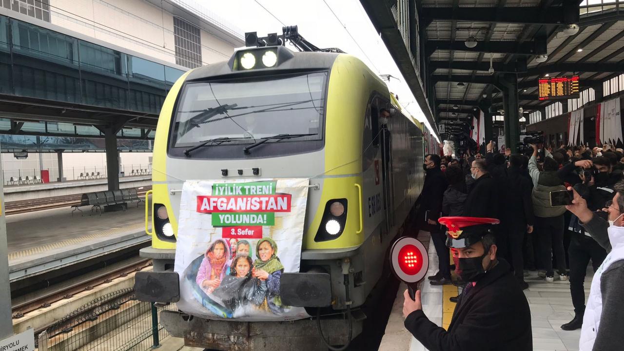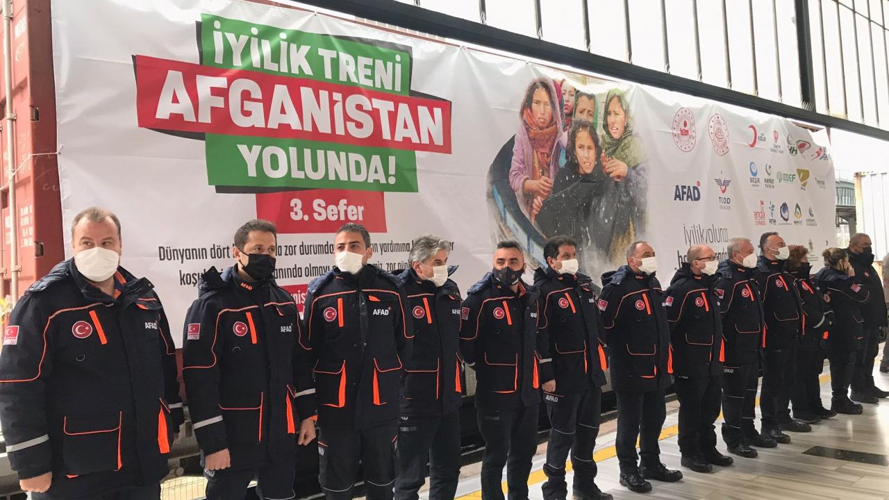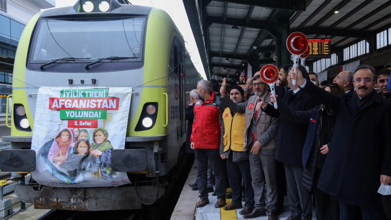 Afet ve Acil Durum Yönetimi Başkanlığı (AFAD) koordinasyonunda 19 sivil toplum kuruluşunun desteğiyle temin edilen yardım malzemelerini taşıyan ve 62 konteynerden oluşan üçüncü "İyilik Treni", törenle Ankara'dan Afganistan'a uğurlandı.