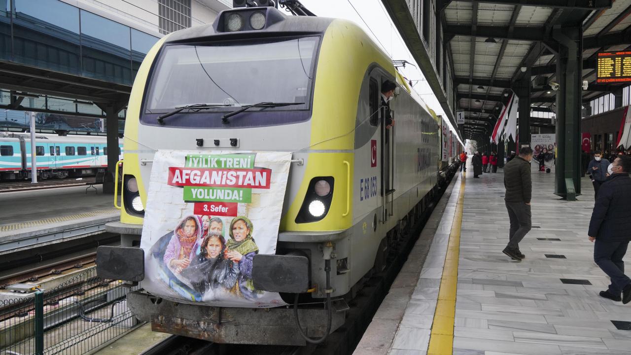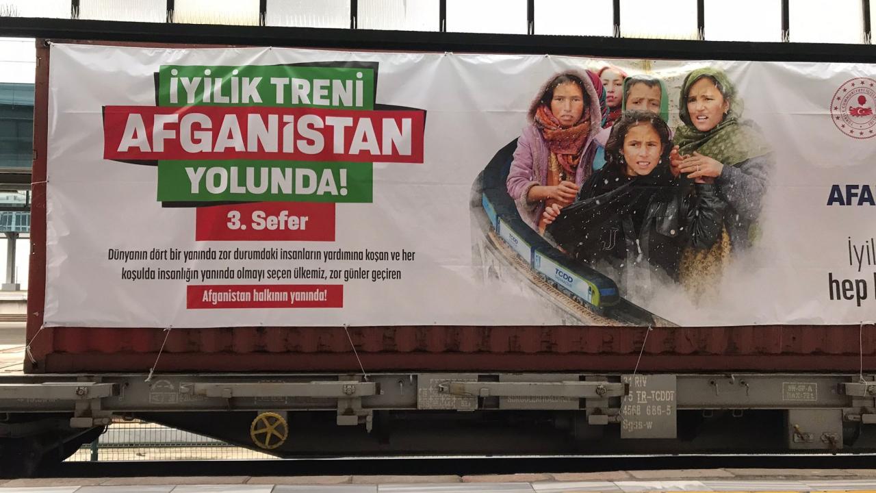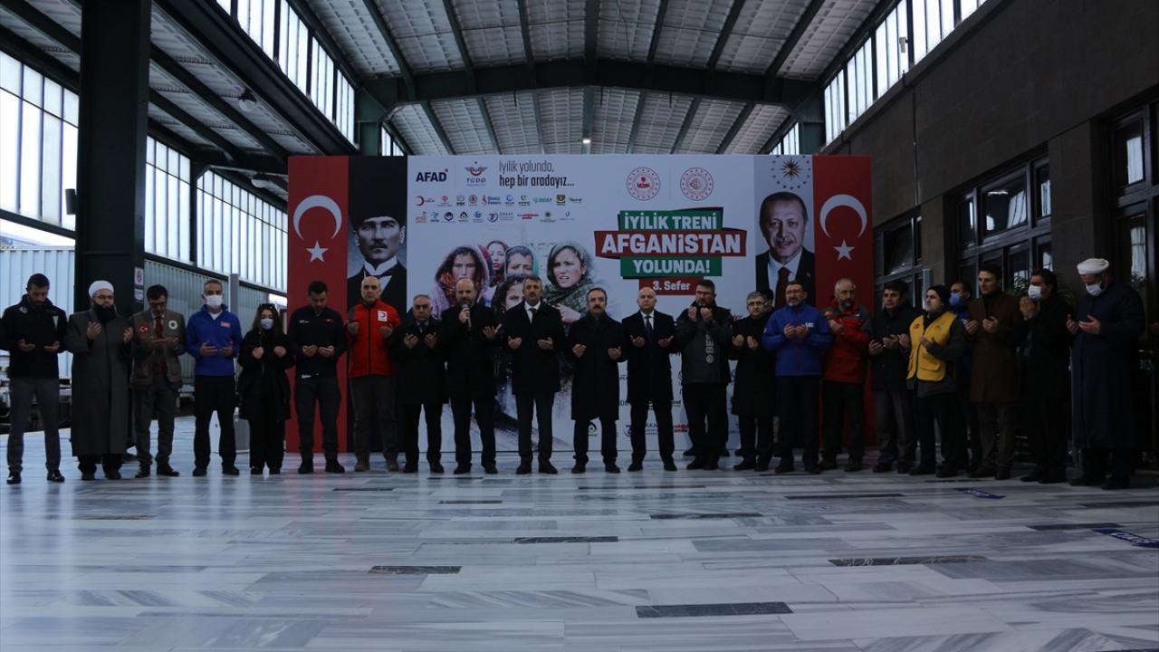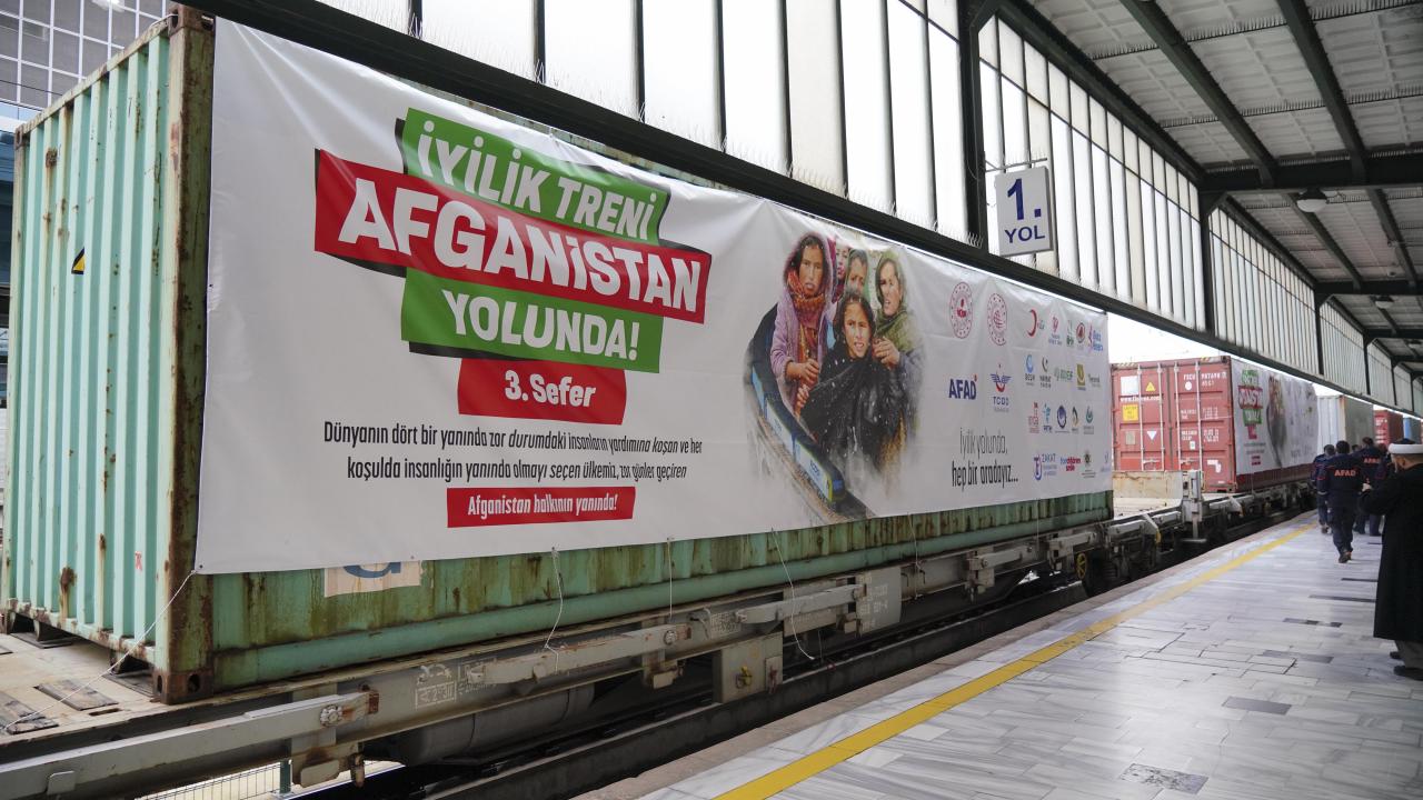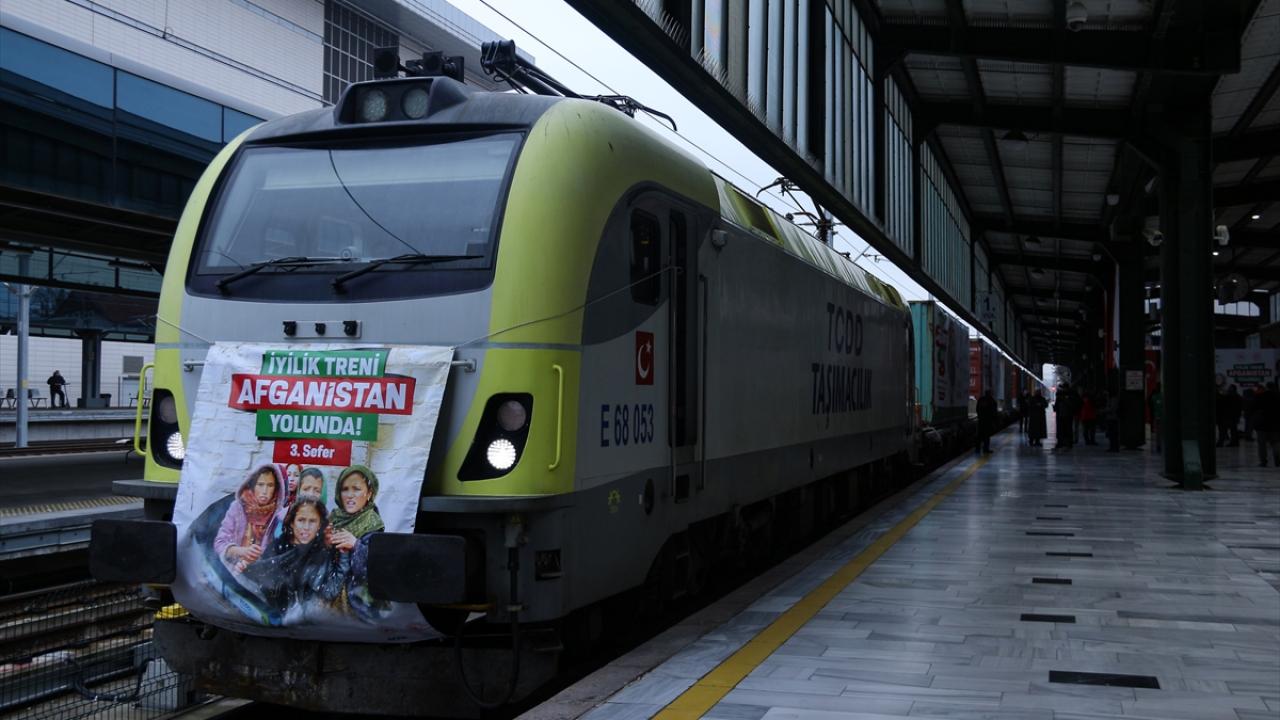 Afet ve Acil Durum Yönetimi Başkanlığı (AFAD) koordinasyonunda 19 sivil toplum kuruluşunun desteğiyle temin edilen yardım malzemelerini taşıyan ve 62 konteynerden oluşan üçüncü "İyilik Treni", törenle Ankara'dan Afganistan'a uğurlandı.