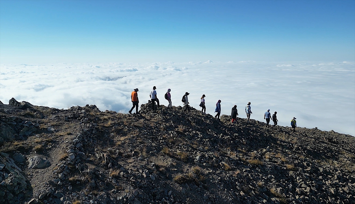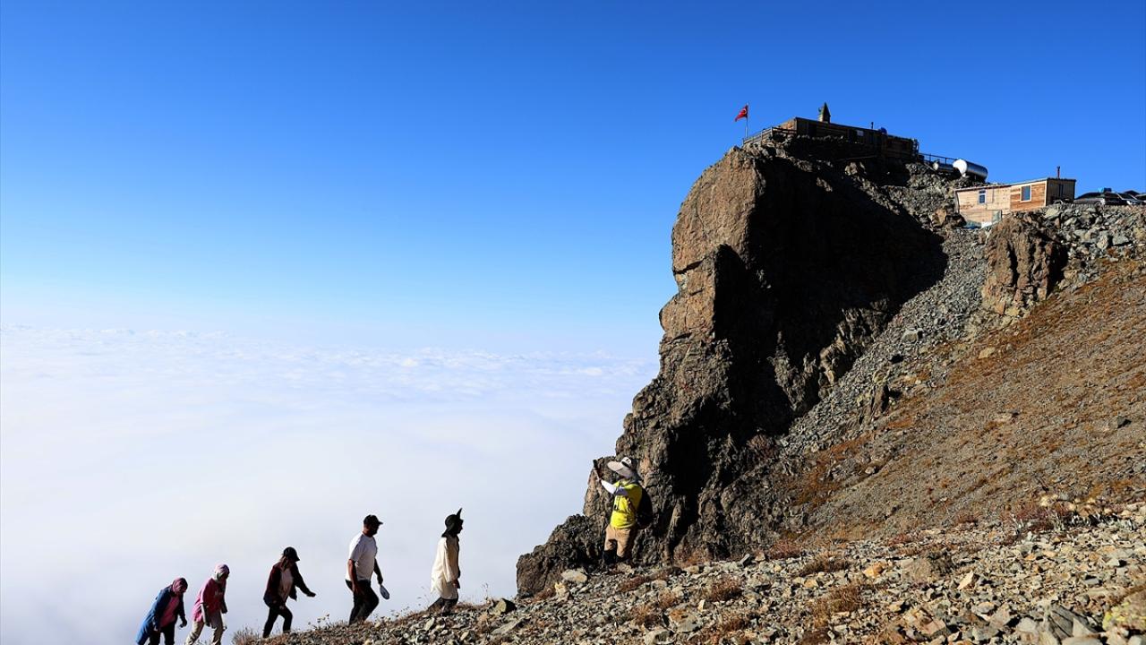 Güzel bir parkur sonunda zirveye ulaştıklarını belirten Akbulut, "İyi ki bugün çıktık muhteşem bir bulut denizi ve manzara var. Çok mutluyuz, burası aynı zamanda bölgenin en iyi zirvelerinden bir tanesi." dedi.