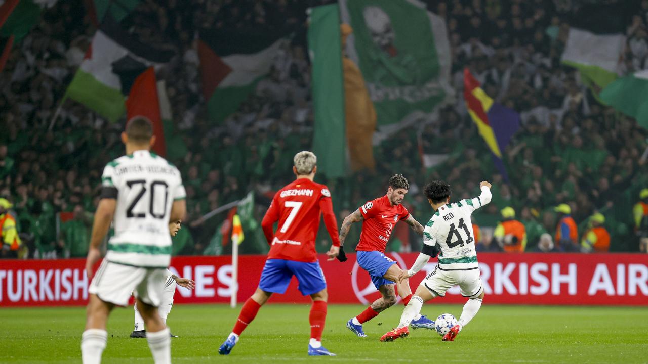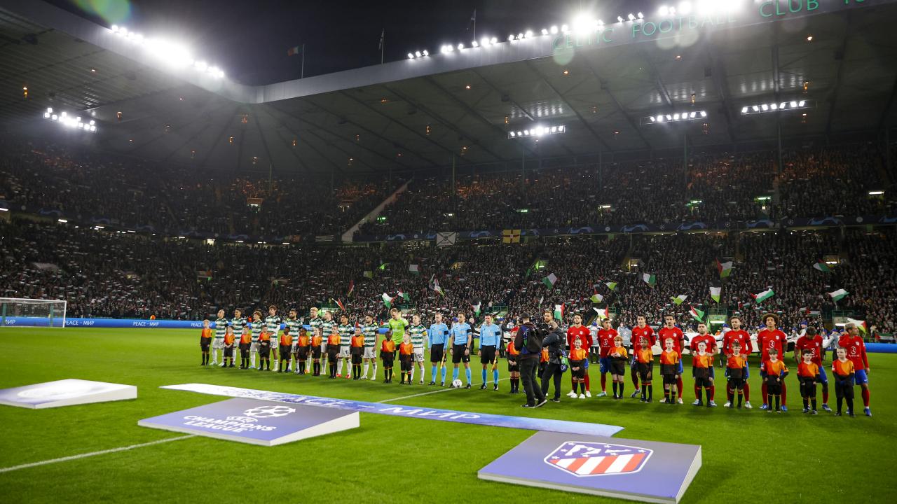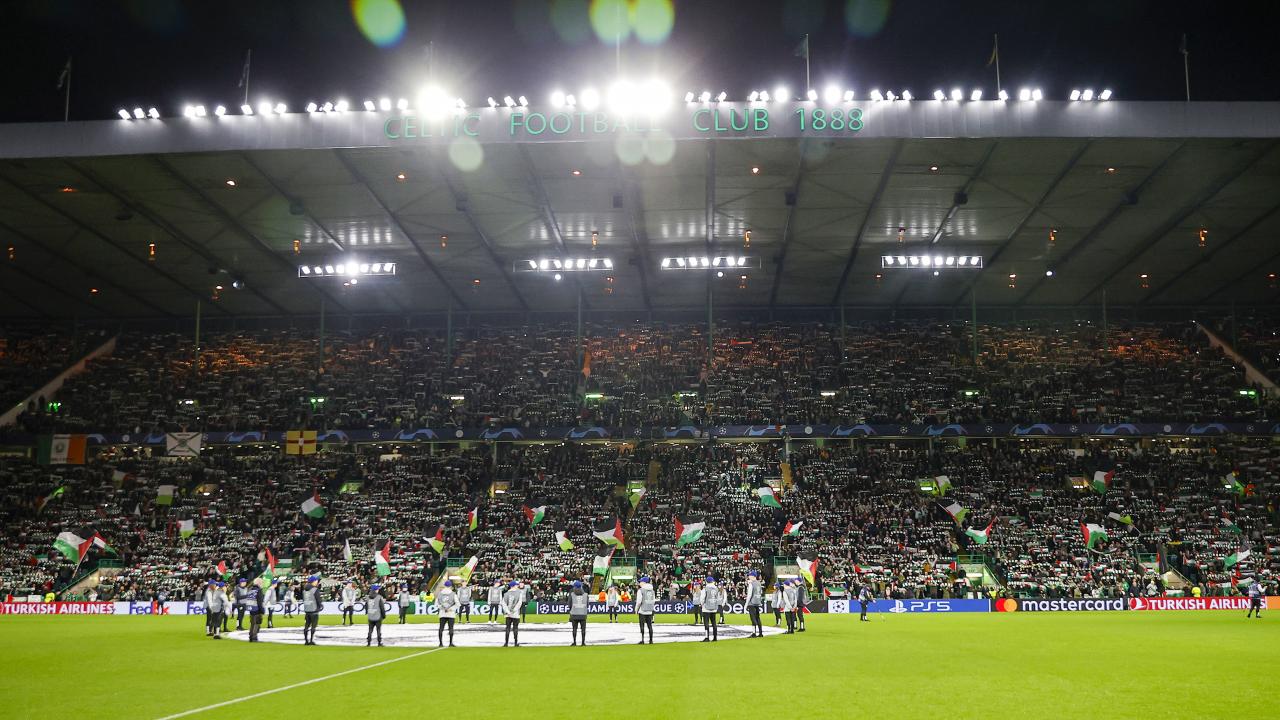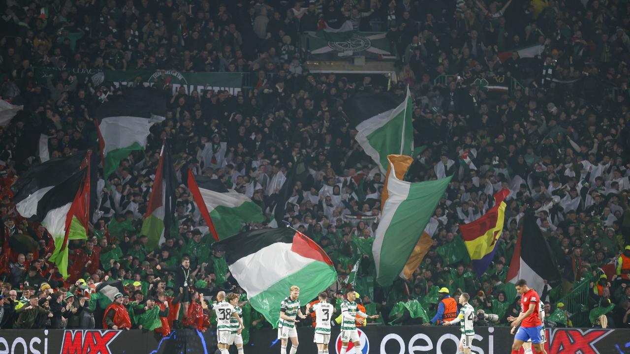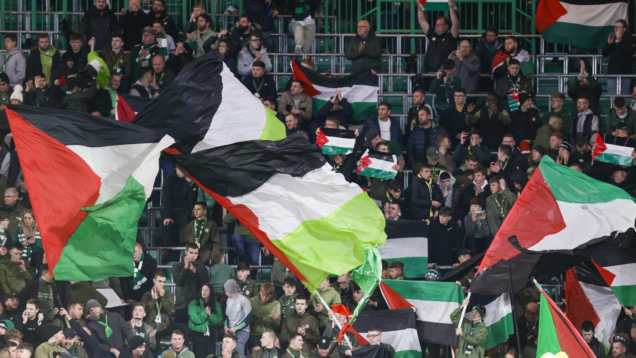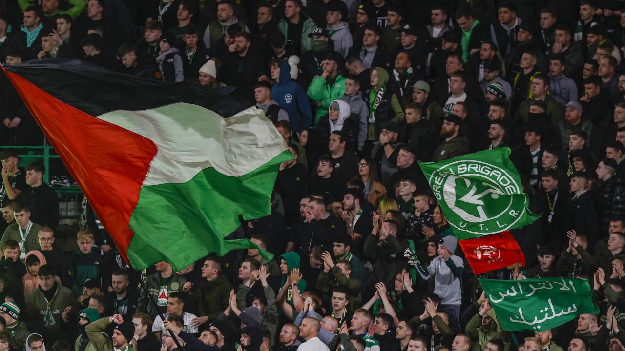 UEFA Şampiyonlar Ligi'nde İskoç temsilcisi Celtic ile İspanya ekibi Atletico Madrid arasındaki oynanan maçta İsrail'in abluka altındaki Gazze'ye saldırıları nedeniyle taraftarlar, Filistin bayrağı açtı.