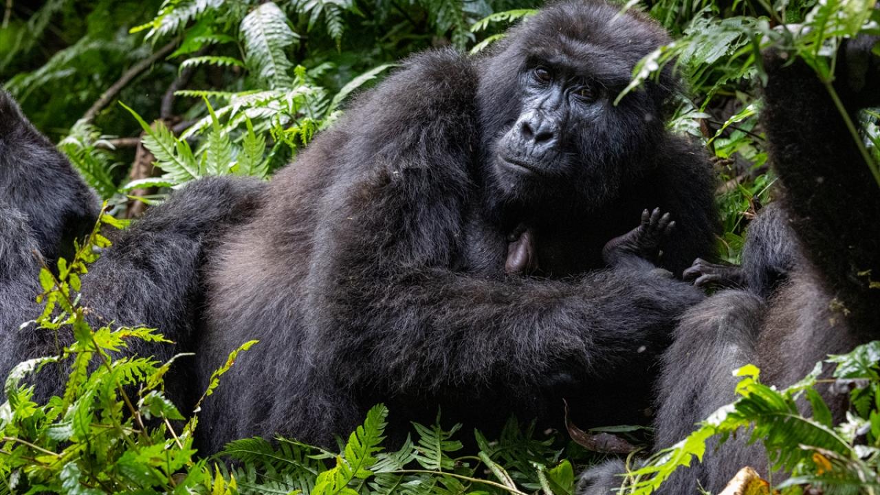 Uganda'daki yağmur ormanlarının yer aldığı Bwindi Geçilmez Milli Parkı'nda koruma altına alınan dağ gorilleri, doğal yaşam alanlarında görevliler tarafından her gün takip ediliyor.