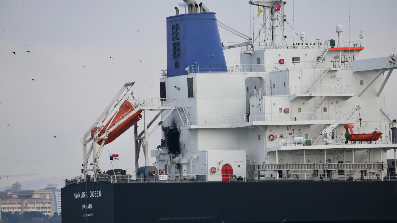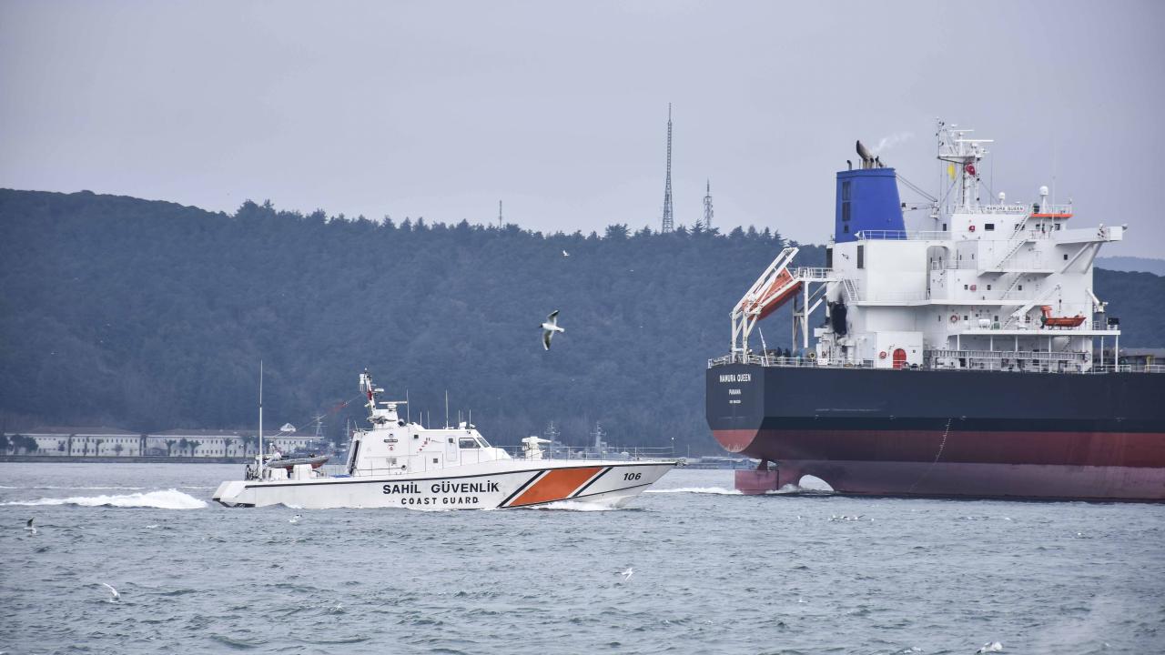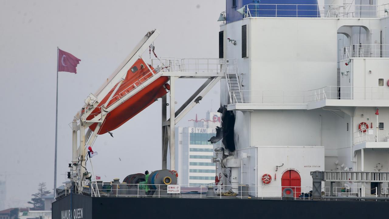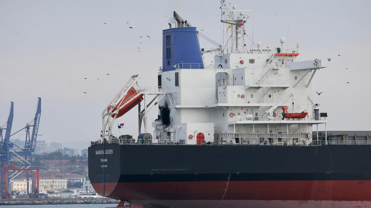 Ukrayna açıklarında füze isabet eden Japon firmaya ait "Namura Queen" adlı kargo gemisi İstanbul Boğazı'ndan geçti.