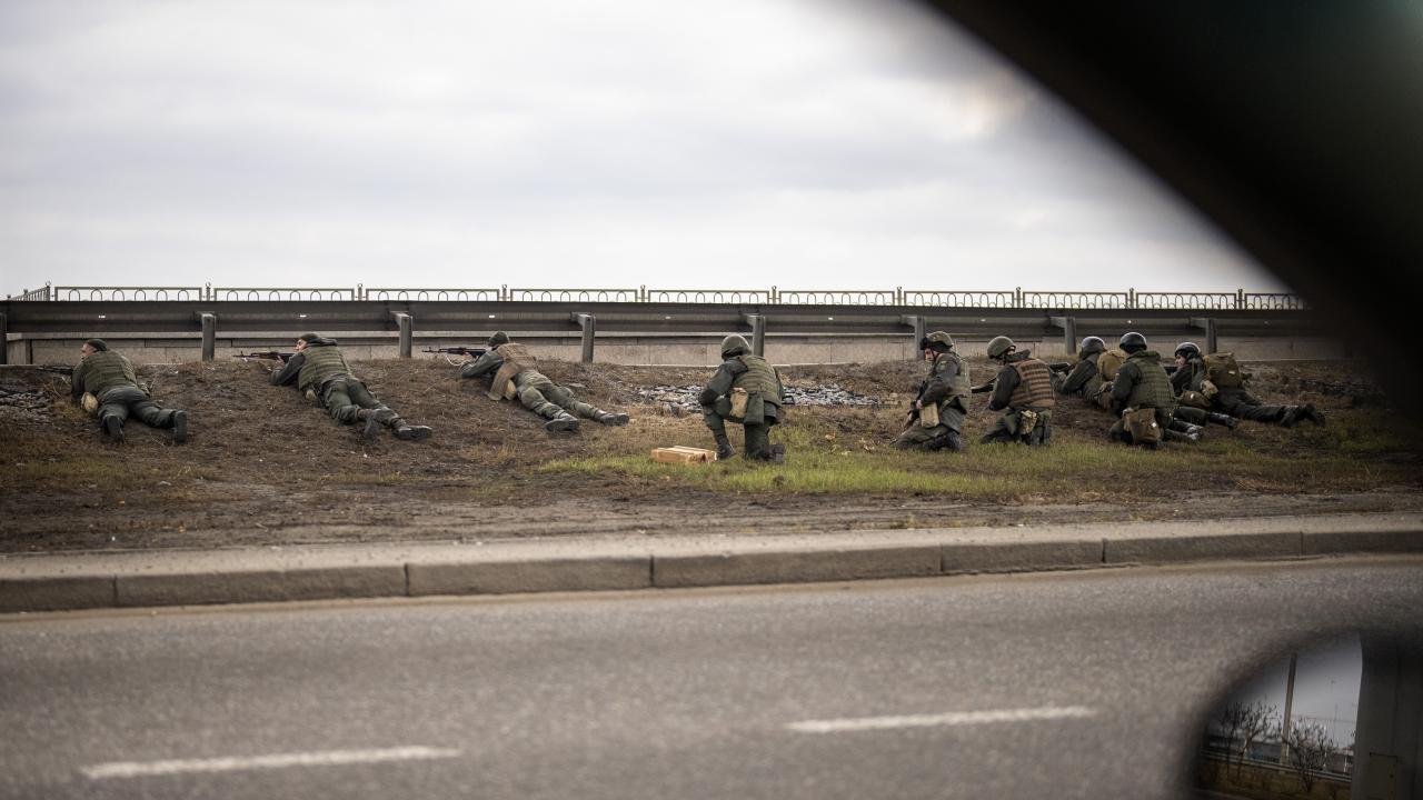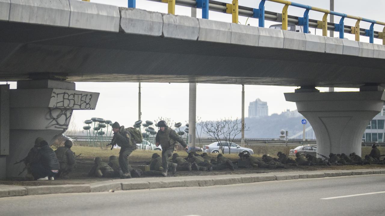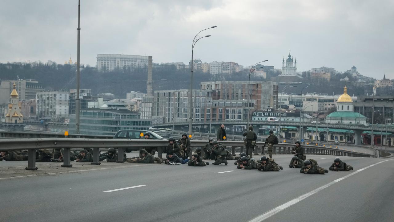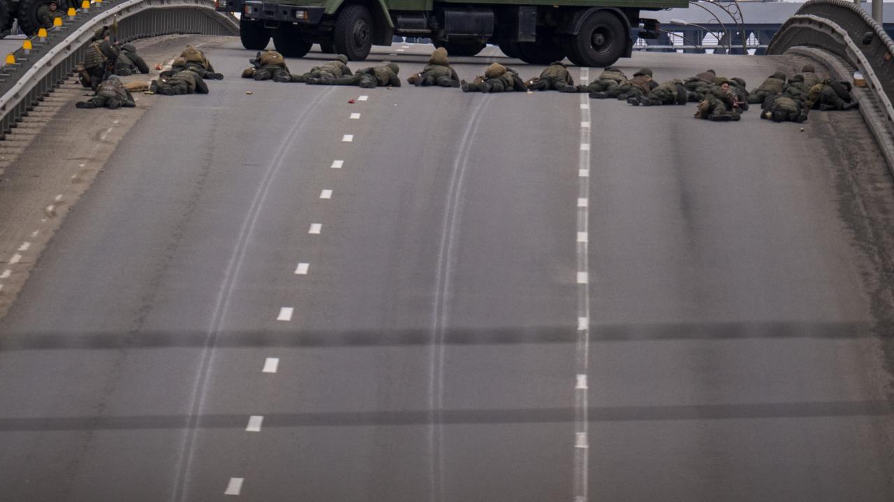 Rusya'nın Ukrayna'ya saldırı başlatmasının 2. gününde Rus birlikleri başkent Kiev'e ilerliyor. Ukrayna askerleri, Kiev merkezinde herhangi bir girişe karşı konuşlandı.