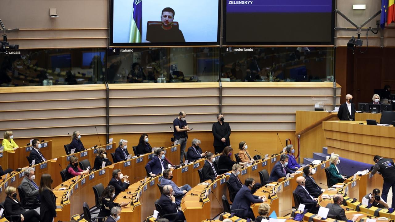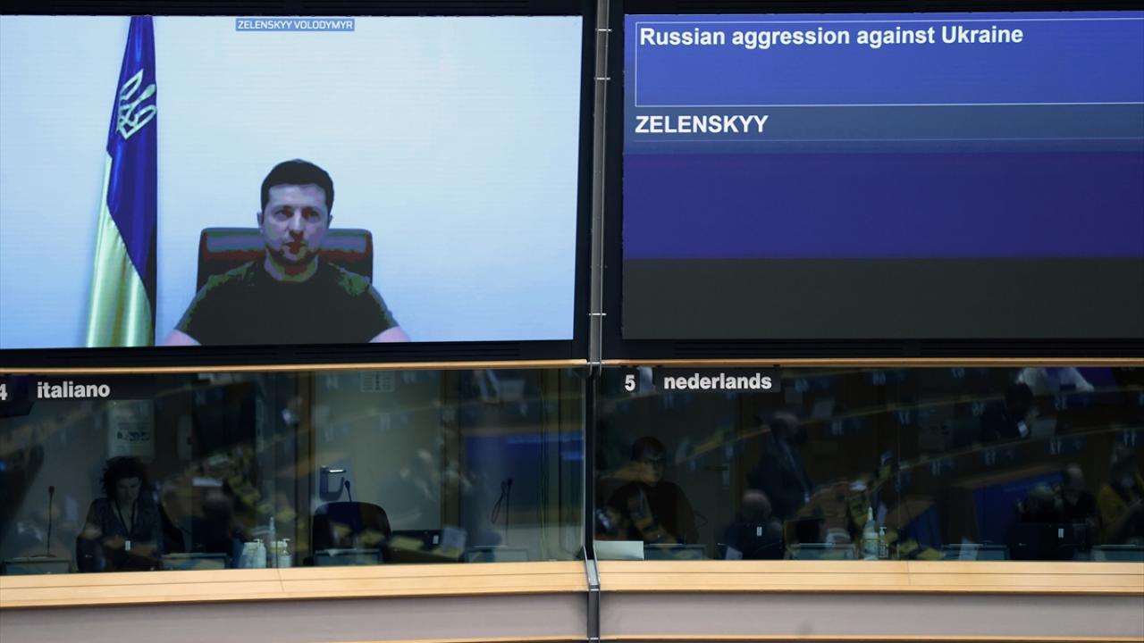 Ukrayna Devlet Başkanı Vladimir Zelenskiy, Avrupa Parlamentosunun (AP) Ukrayna'ya destek için düzenlediği olağanüstü oturumda video bağlantısıyla konuşma yaparak Avrupa ülkelerinden destek istedi.