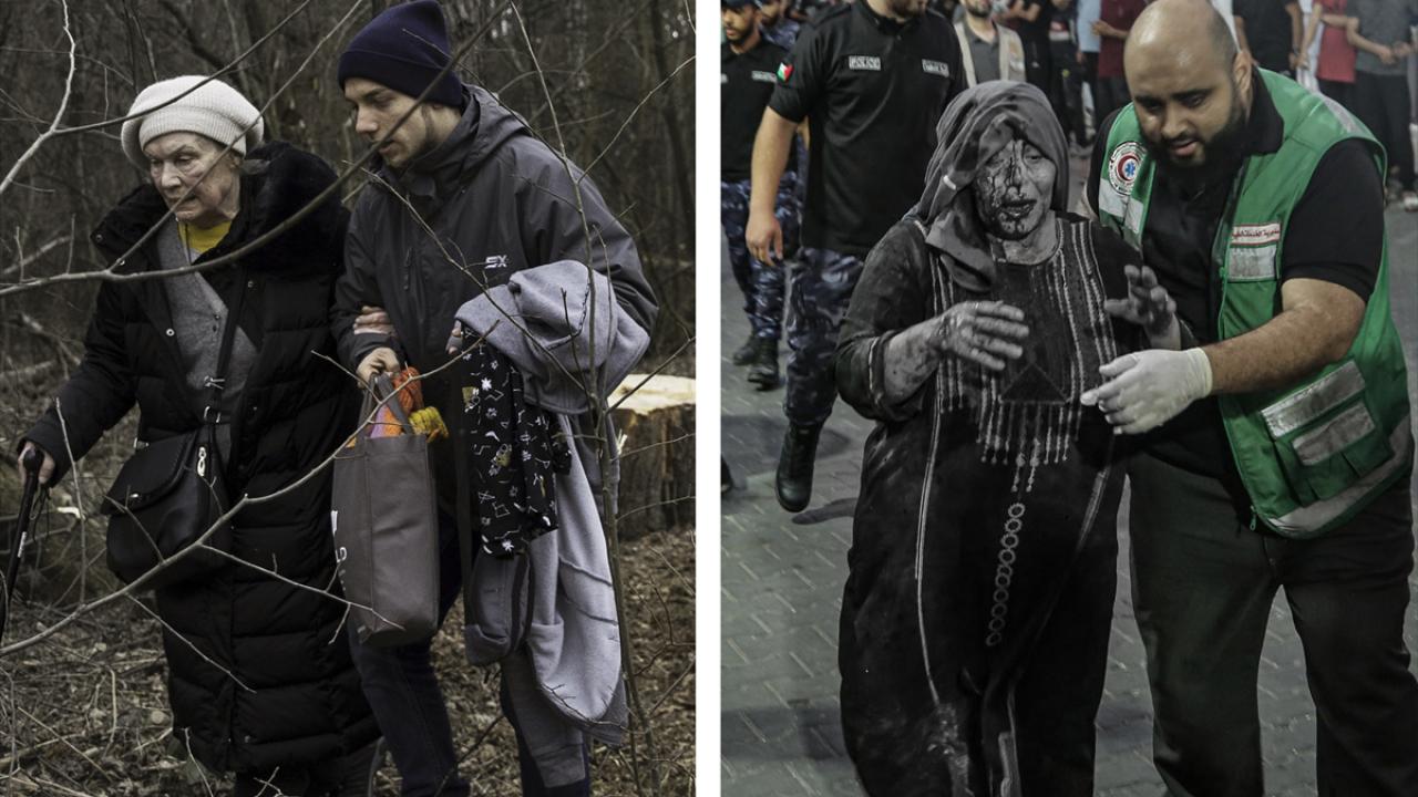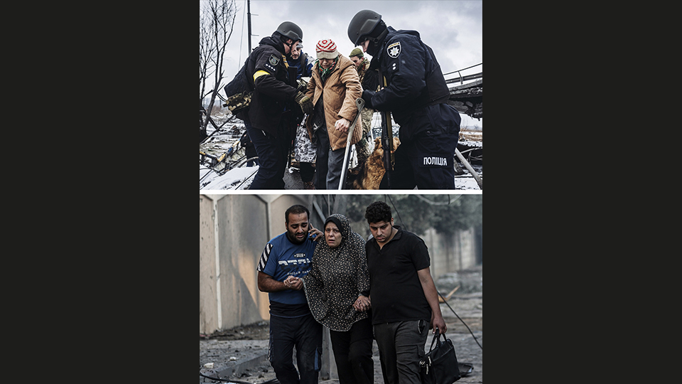 Ukrayna`daki savaşın boyutlarını anlatan ve hafızalarda yer eden fotoğraf karelerinin benzerlerine, İsrail`in Gazze`ye saldırılarında da rastlanıyor.