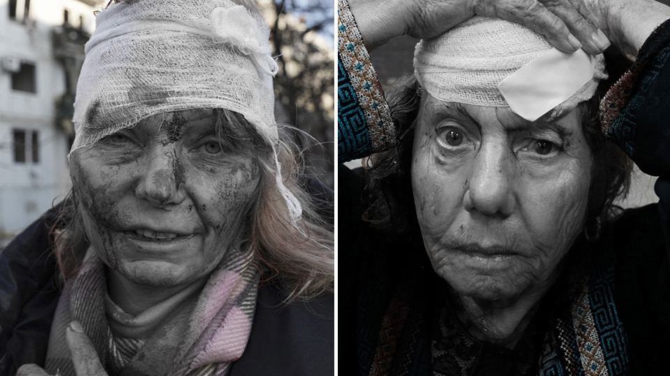Ukrayna`nın Harkiv kentinde Rusya`nın düzenlediği hava saldırısı sonrası yaralanan Olena Kurilo ile İsrail`in saldırıları sonucu Gazze`de yaralanan kadının objektife umutsuzca ve dehşet içindeki bakışları birbirini anımsatıyor.