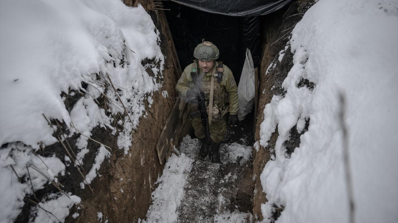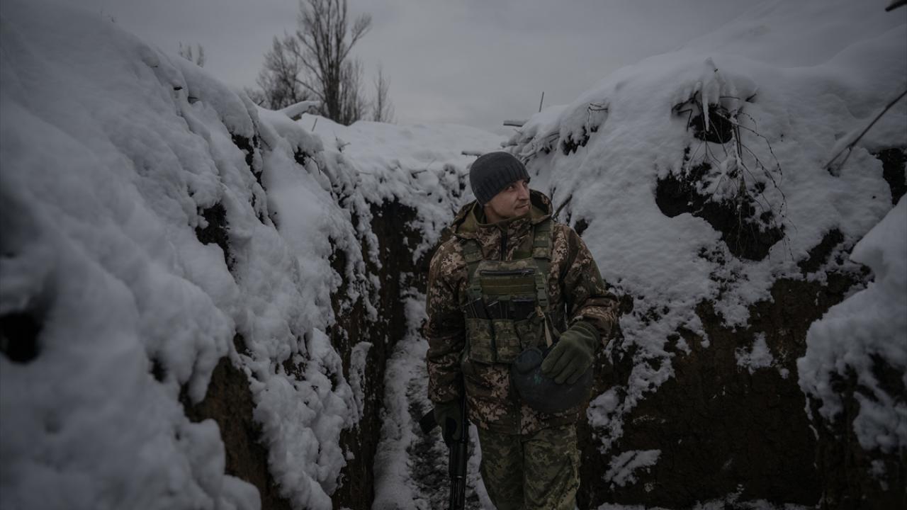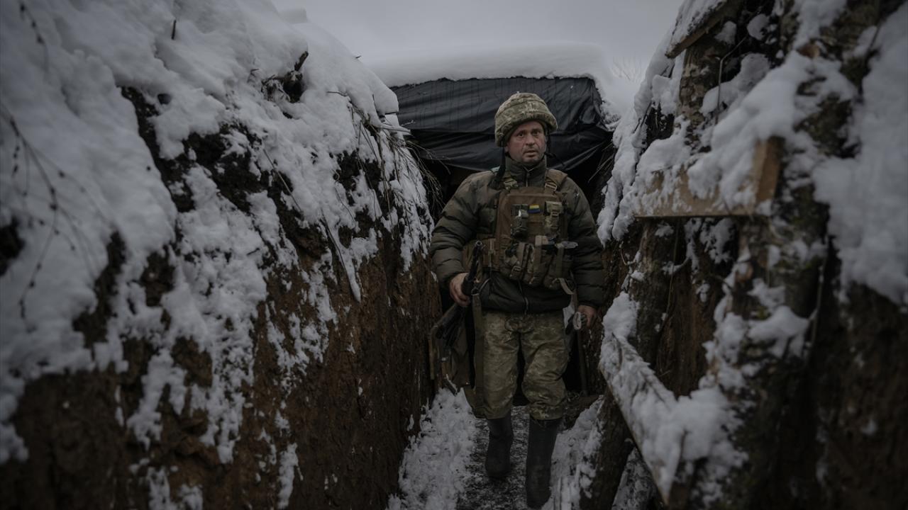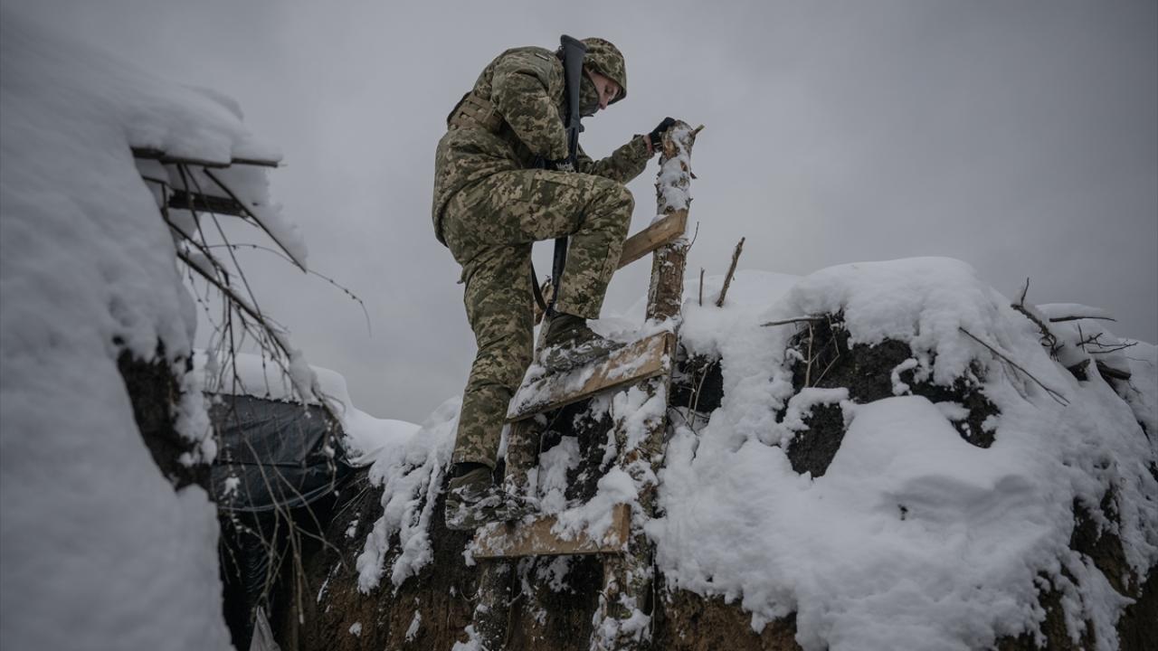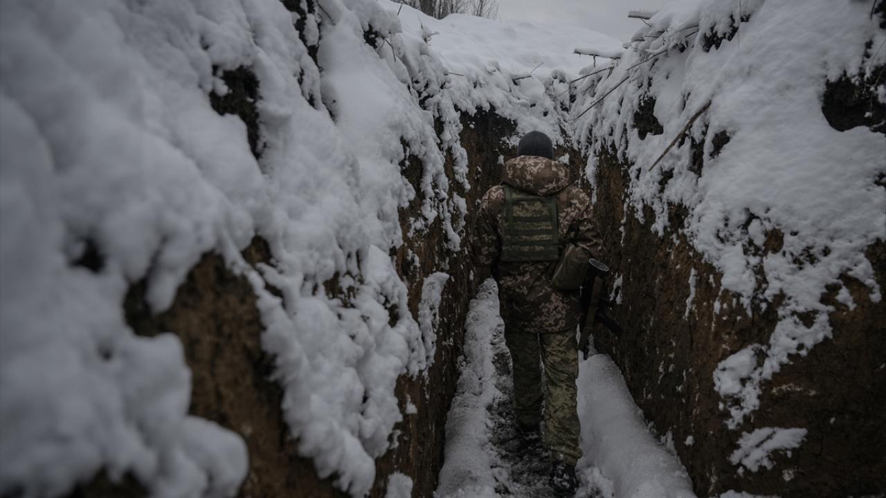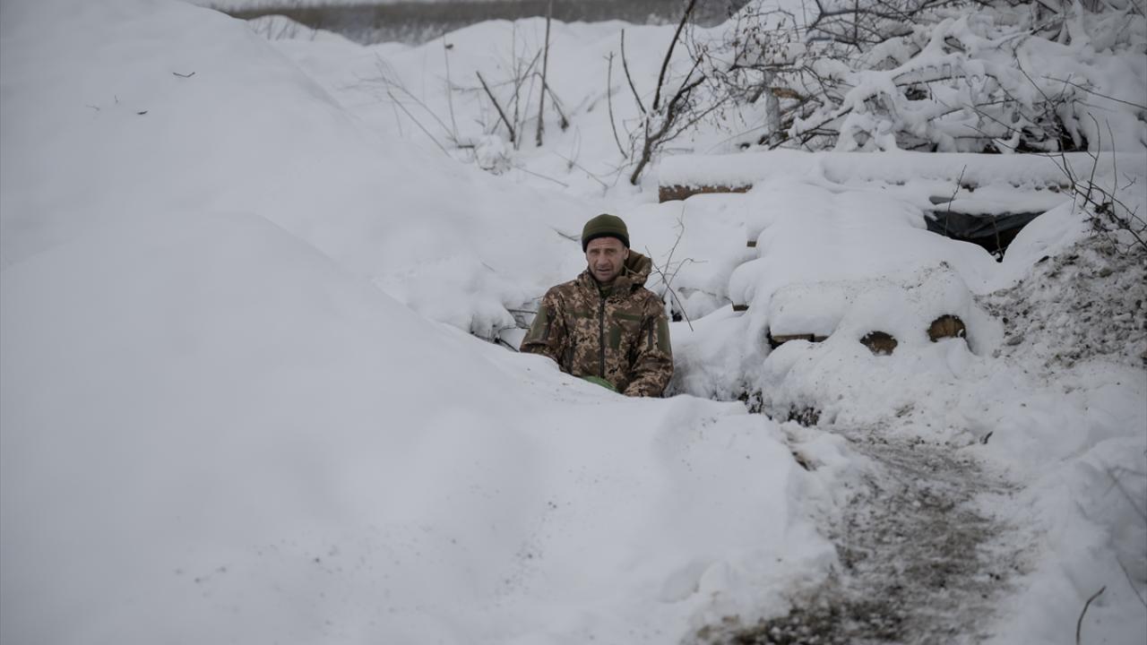 Karın yağdığı ve hava sıcaklığının sıfırın altına düştüğü Ukrayna`da cephe hatlarındaki siperler beyaza büründü.