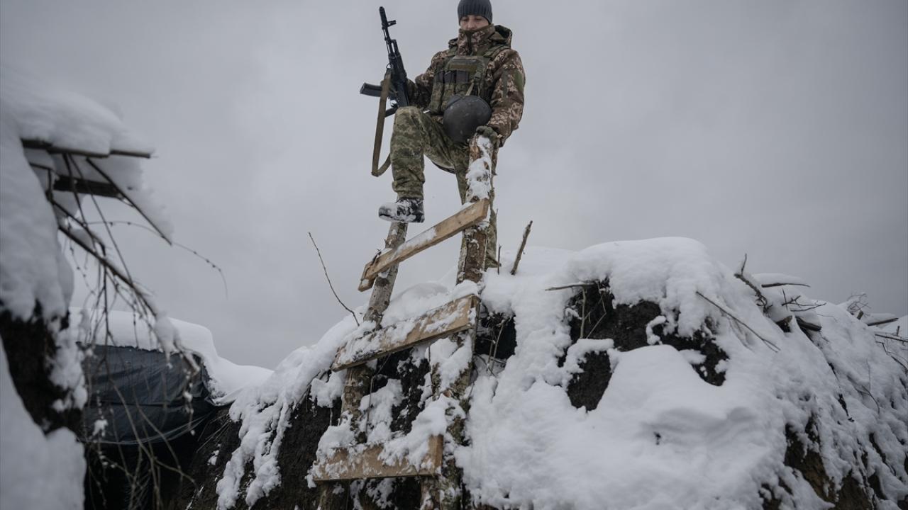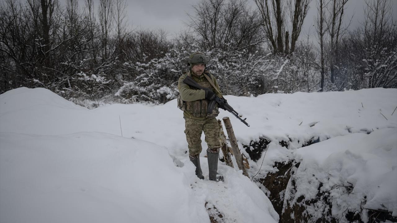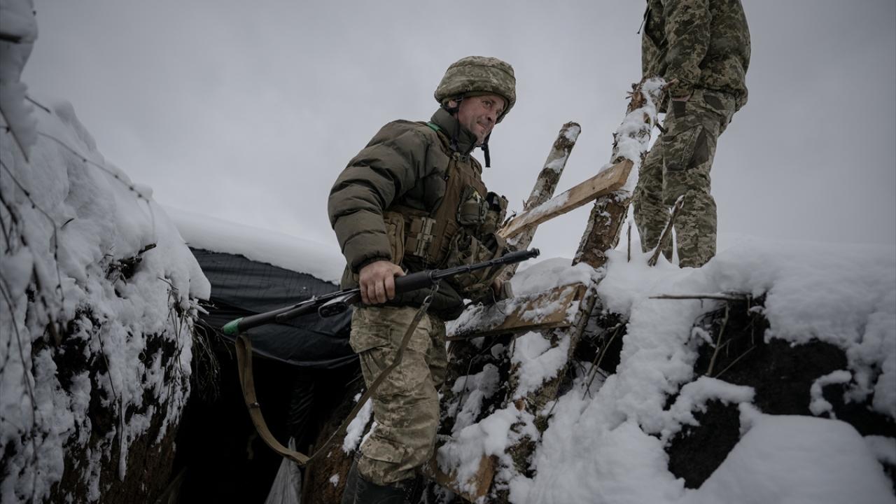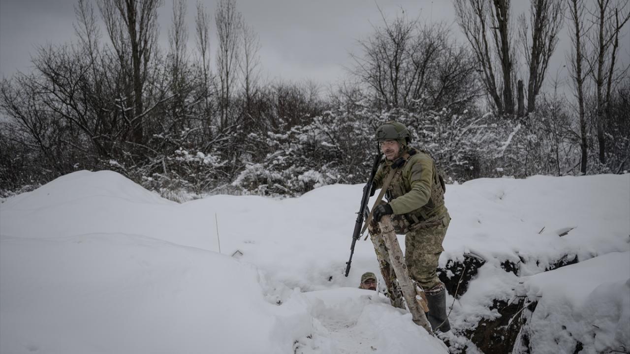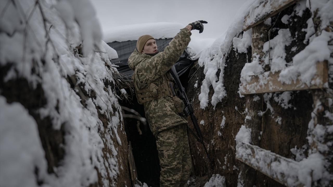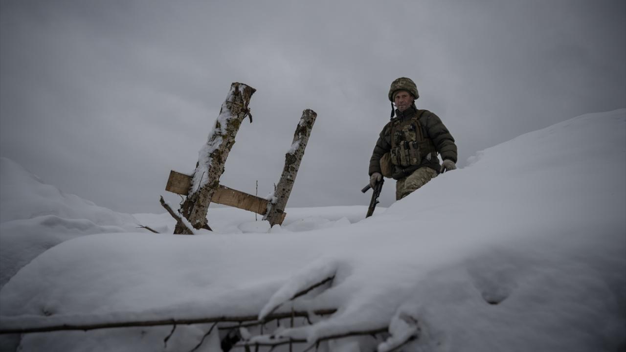 Karın yağdığı ve hava sıcaklığının sıfırın altına düştüğü Ukrayna`da cephe hatlarındaki siperler beyaza büründü.