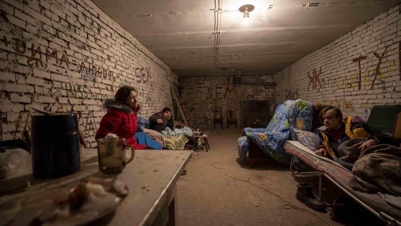 Kentte Ukrayna güvenlik güçlerinin temsilcileri ve yoğun hava saldırılarının yaşandığı bölgeye girmeye cesaret eden gönüllülerin yardımlarıyla faaliyetini sürdüren bir okul binasının altındaki çok sayıda sivili barındıran sığınaktaki yaşam ağır şartlarda sürüyor.