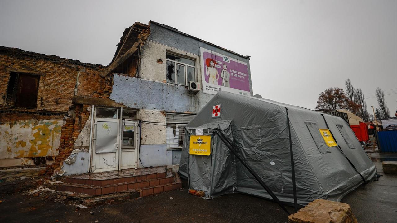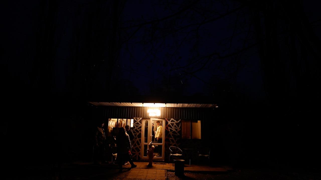 Havaların oldukça soğuduğu Hostomel`de yaşayanlar, evlerinde elektrik kesintilerinin olduğu saatlerde kentin birçok noktasında faaliyet gösteren `Yenilmezlik Noktaları` olarak bilinen yardım merkezlerine akın ediyor.
