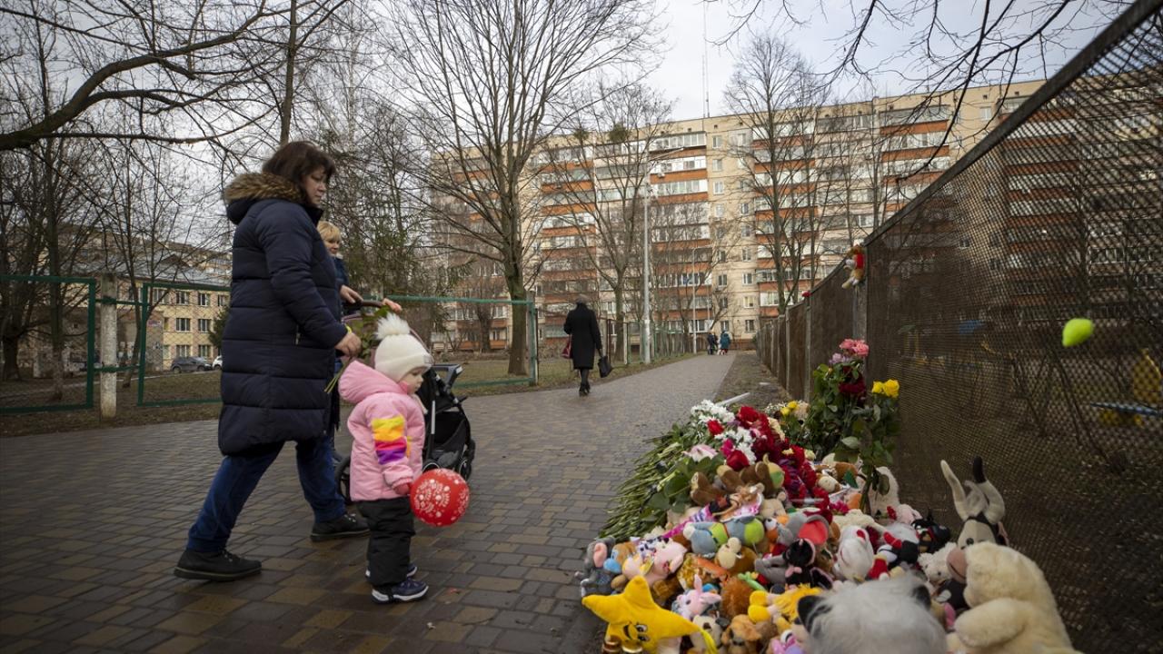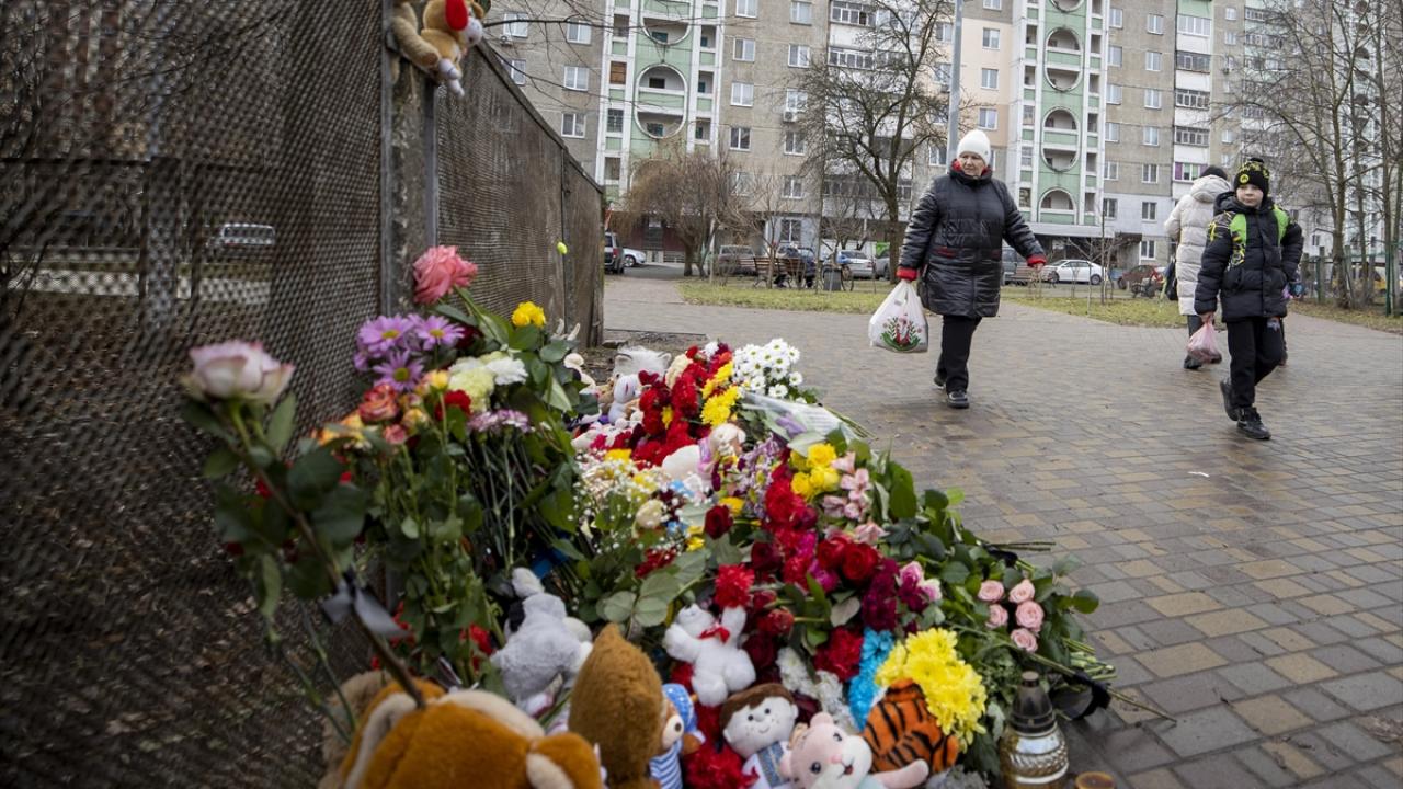 Ukraynalılar, başkent Kiev bölgesine bağlı Brovari kentinde 18 Ocak sabah erken saatlerinde meydana gelen helikopter kazasında yaşamını yitirenleri enkaz alanında anıyor.