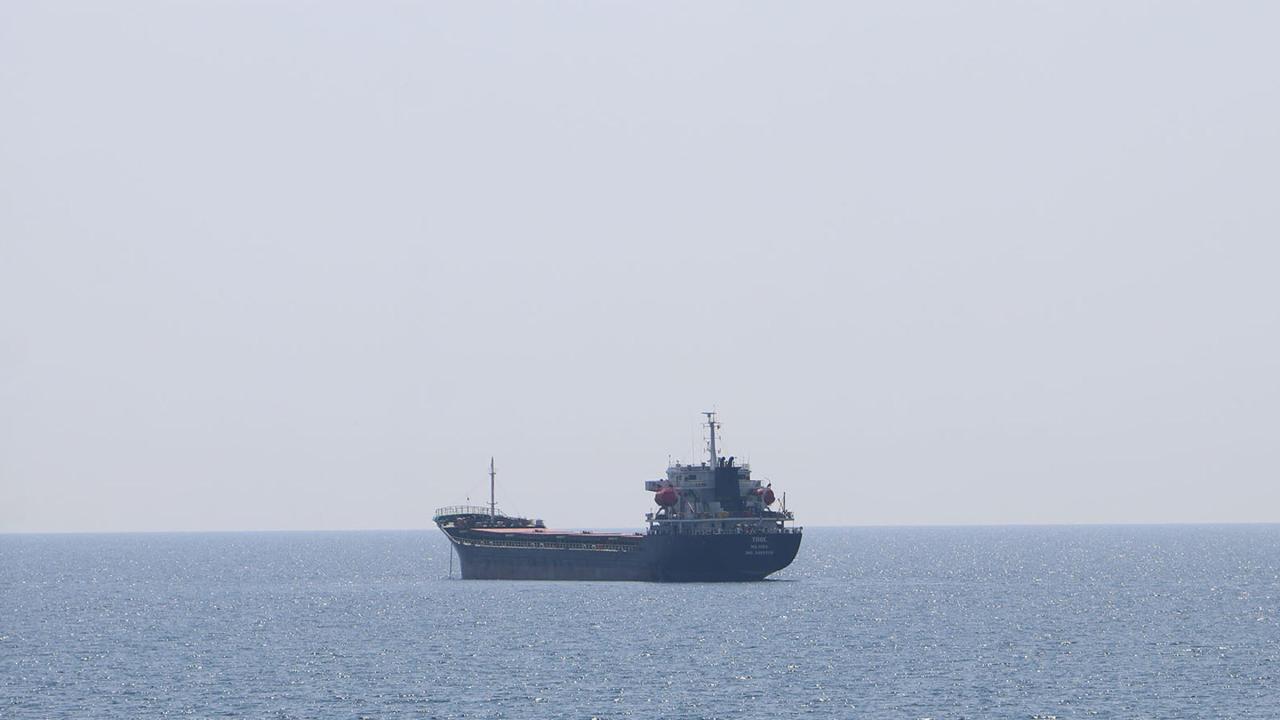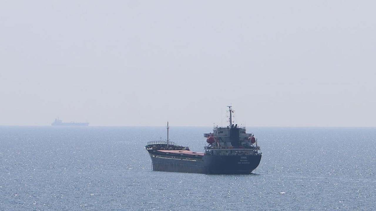 Ukrayna'dan yola çıkan 3 bin ton ayçiçeği yüklü, Marshall Adaları bayraklı 'Thoe' isimli gemi, Tekirdağ açıklarında demirlendi.