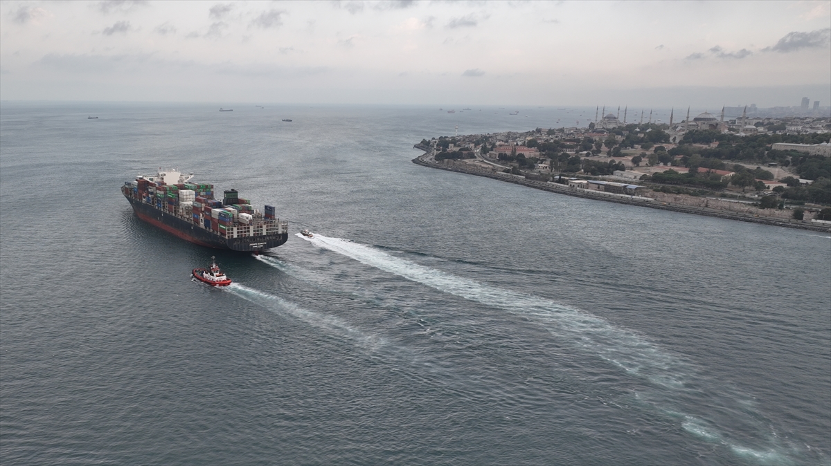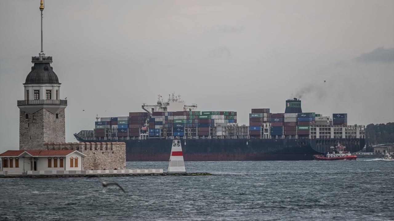 Odessa Limanı`ndan hareket eden konteyner yüklü gemi, Karadeniz tarafından İstanbul Boğazı`ndan geçti.