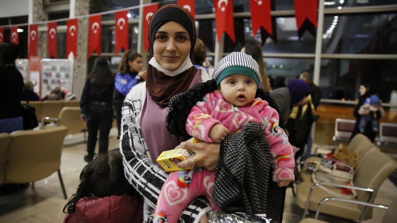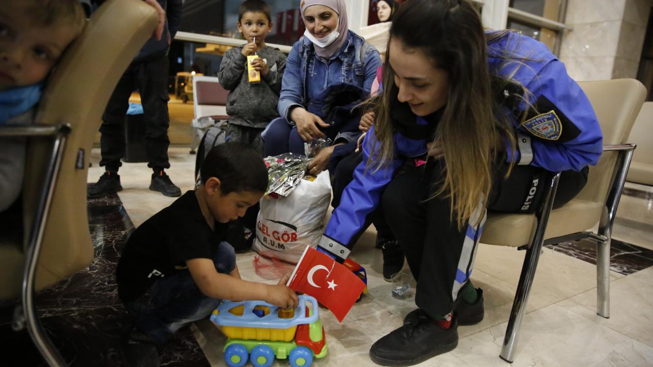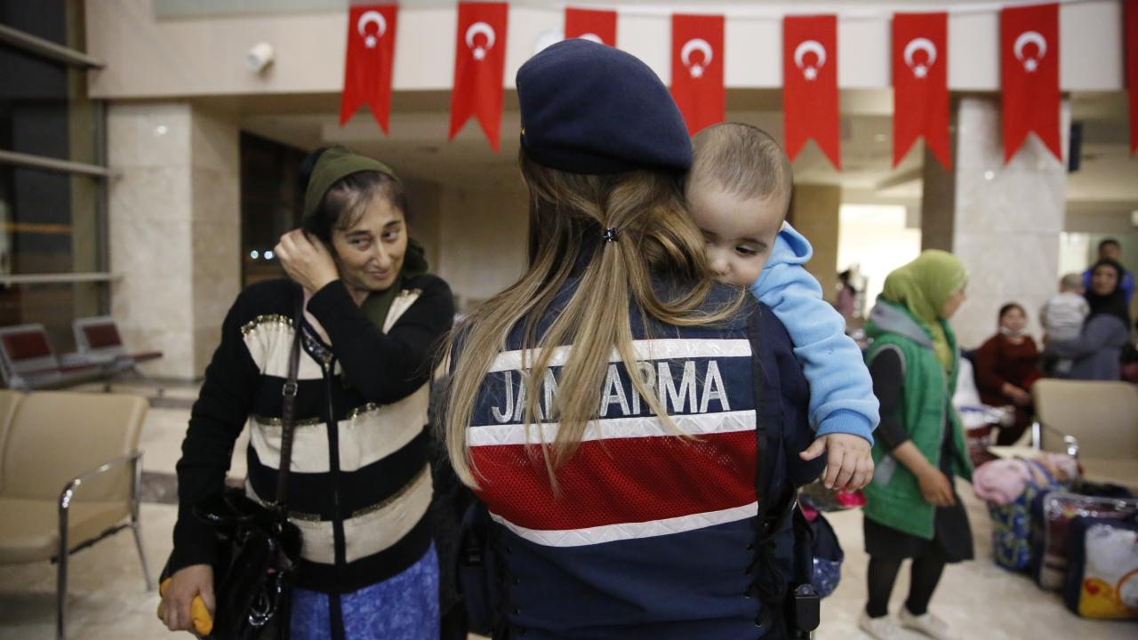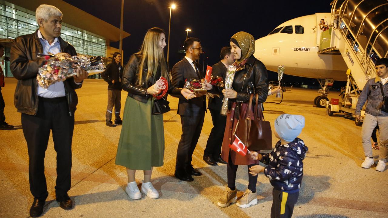 Havalimanının bekleme salonuna alınarak ihtiyaçları giderilen gruptakiler, kargo işlemlerinin tamamlanmasının ardından otobüslerle yerleştirilecekleri Aşağıdemirtaş Geçici Konaklama Merkezine götürüldü.