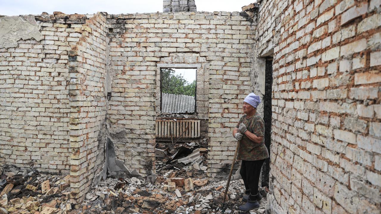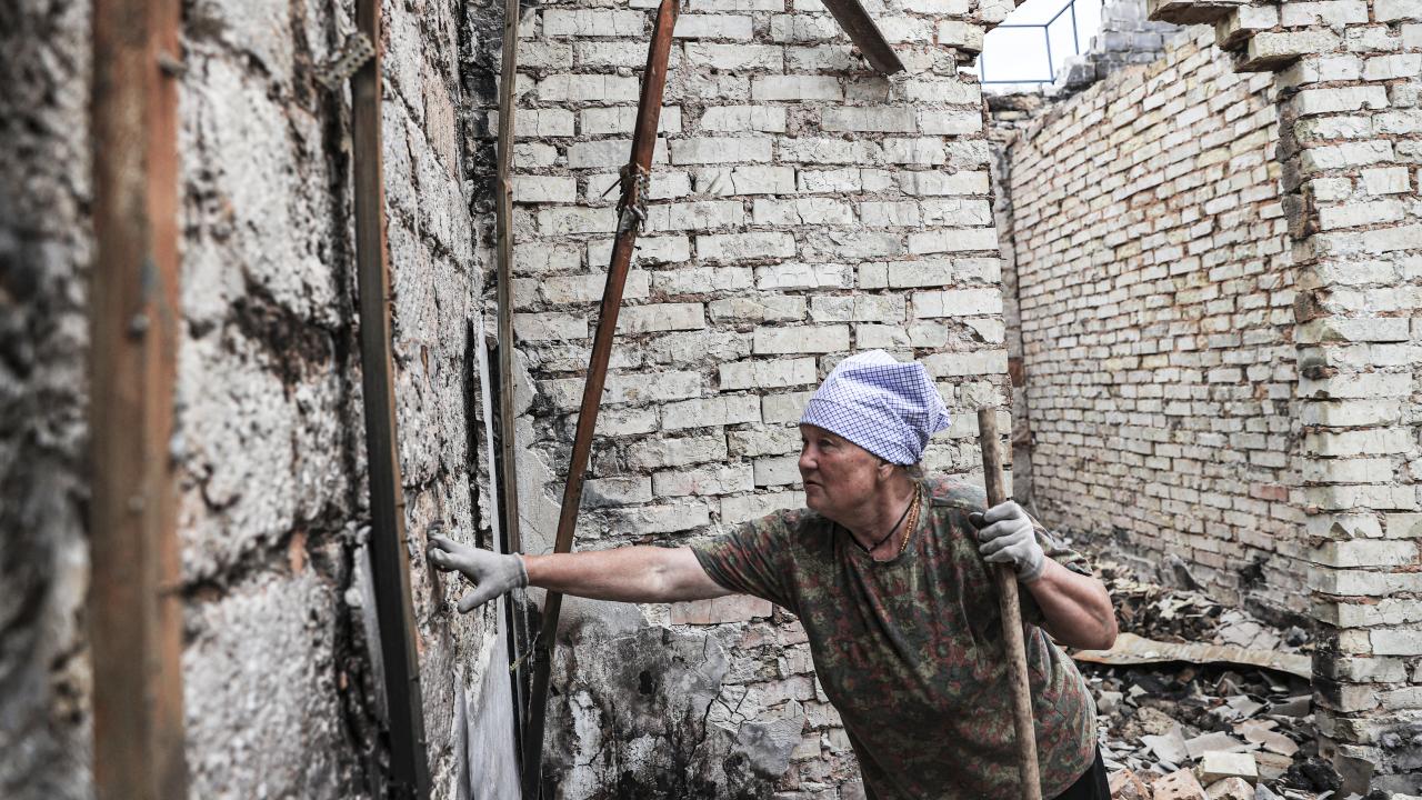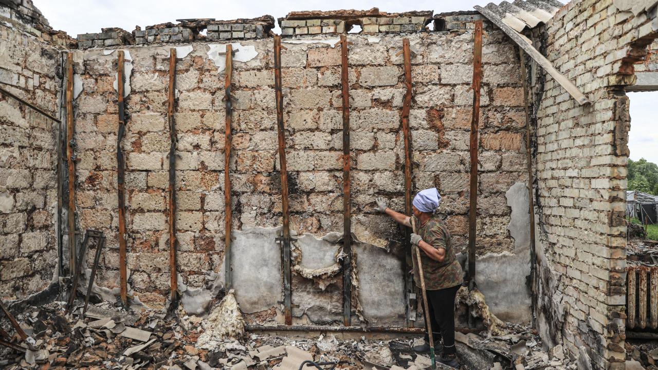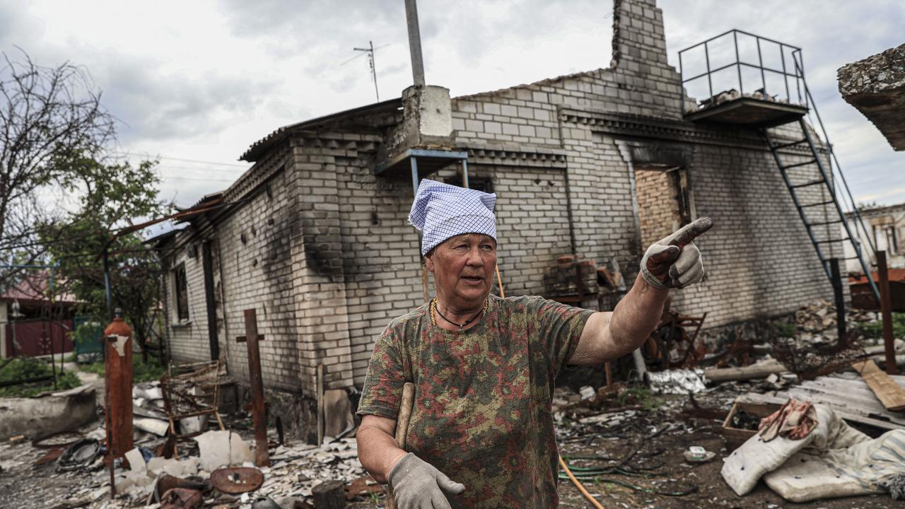 Ukraynalı kadın yıkılan evinin enkazını terk etmiyor