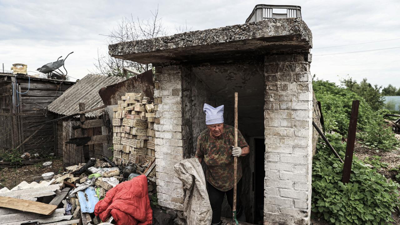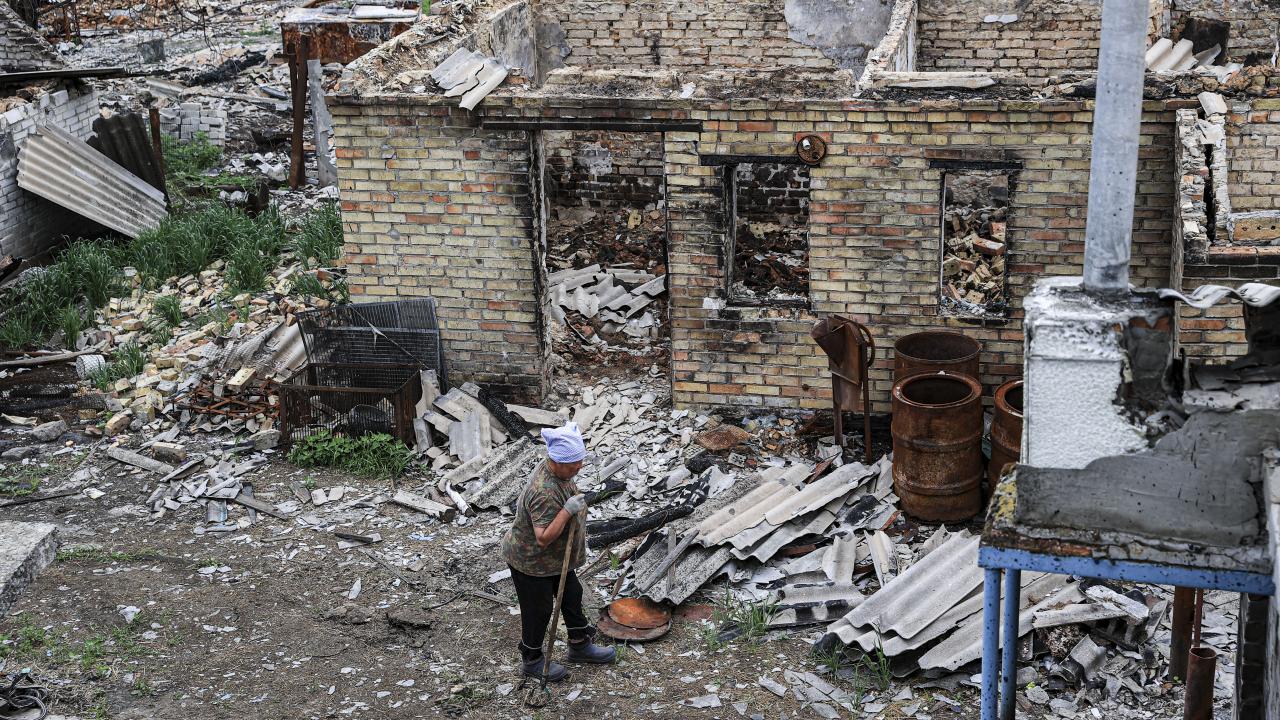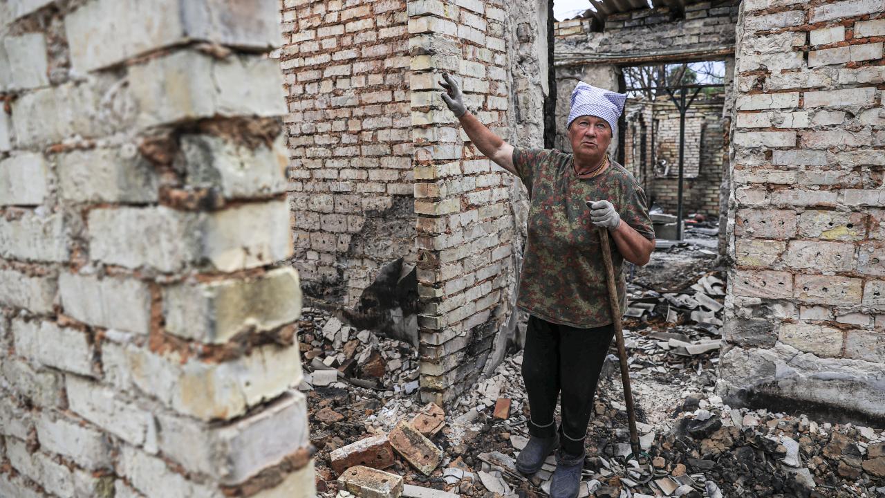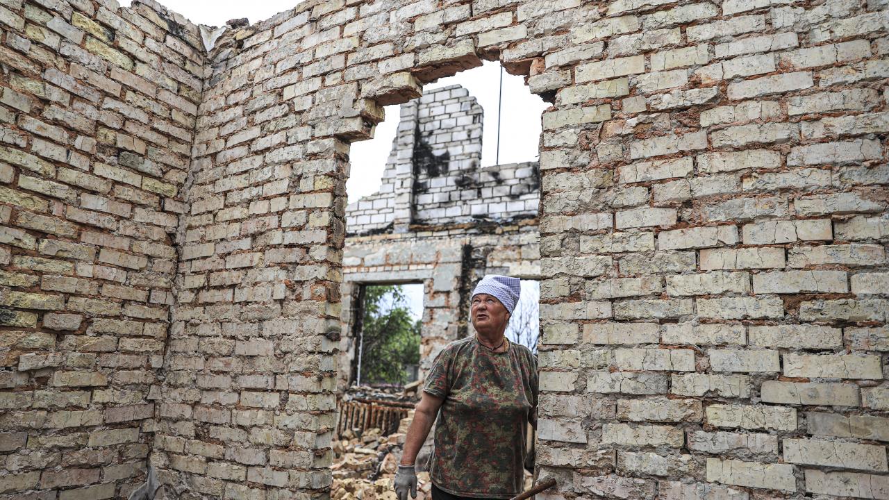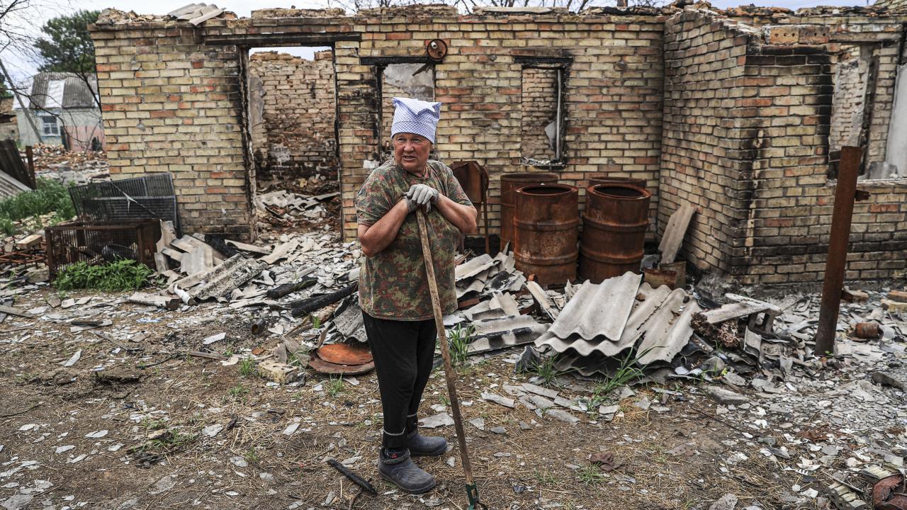 Ukrayna'nın başkenti Kiev bölgesinde bulunan ve Rusya'nın saldırıları sonucu ağır hasar gören Zahaltsi köyünde evini ve çiftliğini kaybeden Lyudmila Lovk, haftalardır enkaz alanını terk etmiyor.