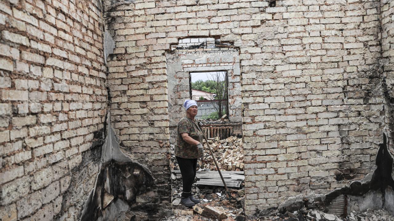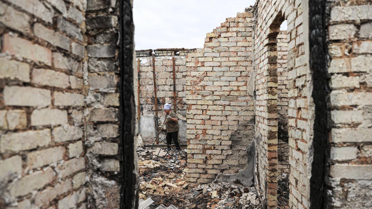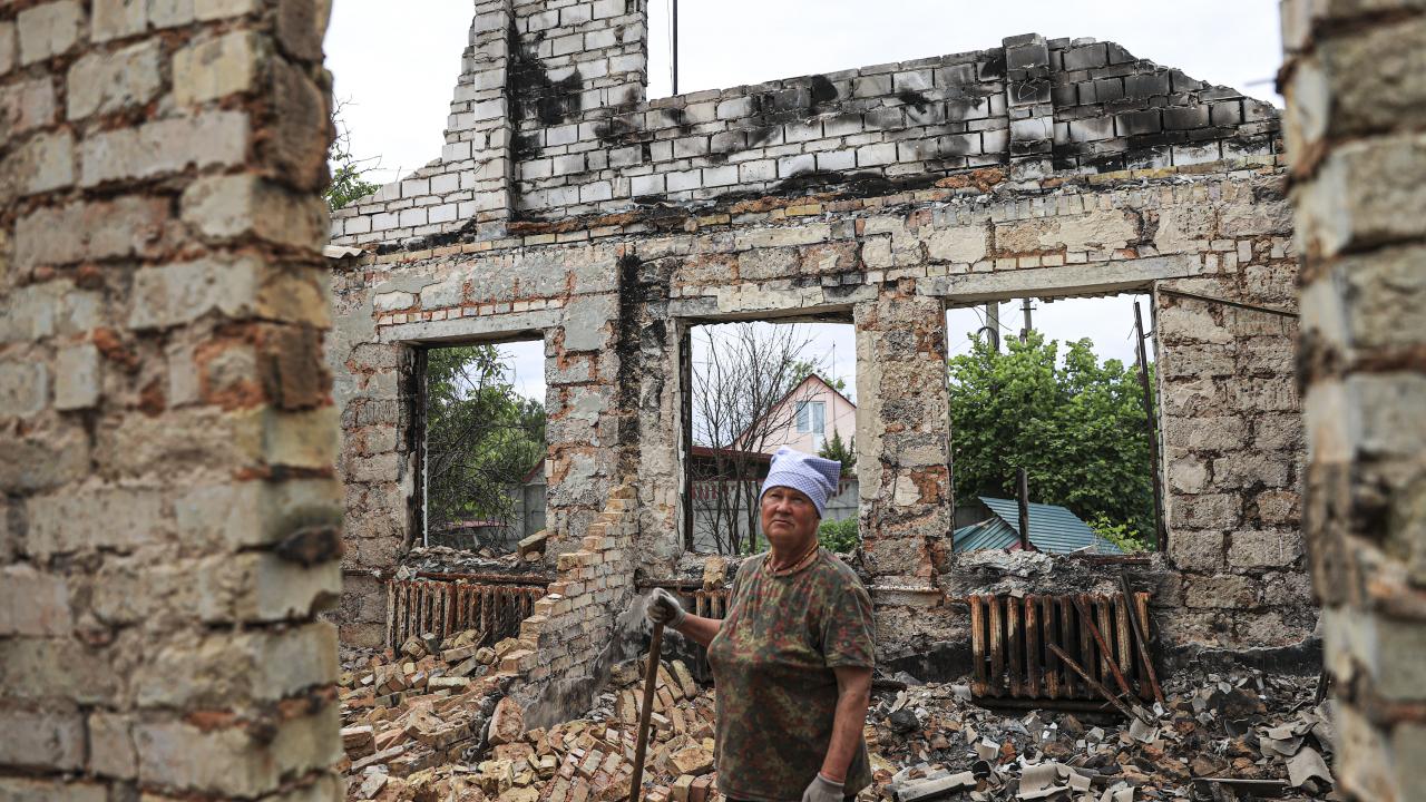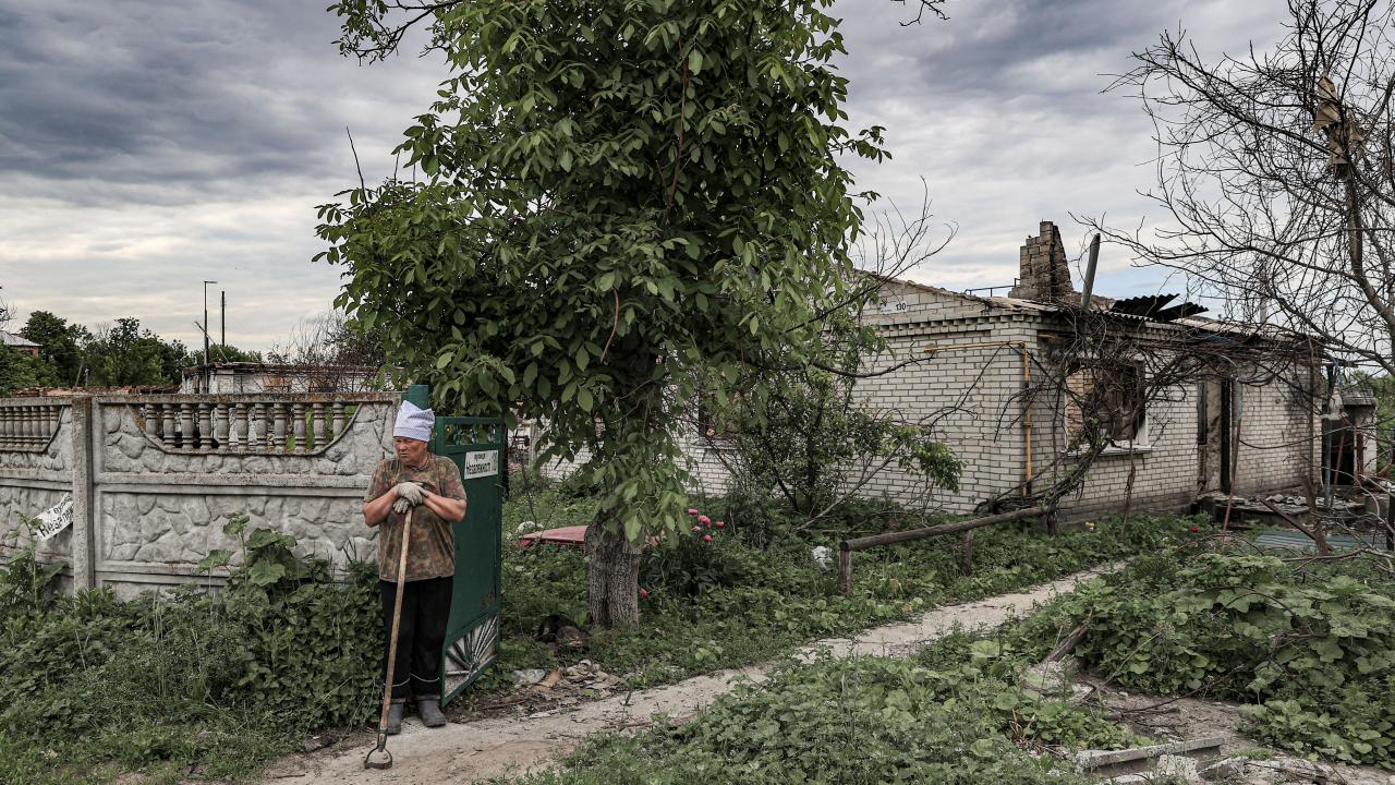 Ukrayna'nın başkenti Kiev bölgesinde bulunan ve Rusya'nın saldırıları sonucu ağır hasar gören Zahaltsi köyünde evini ve çiftliğini kaybeden Lyudmila Lovk, haftalardır enkaz alanını terk etmiyor.