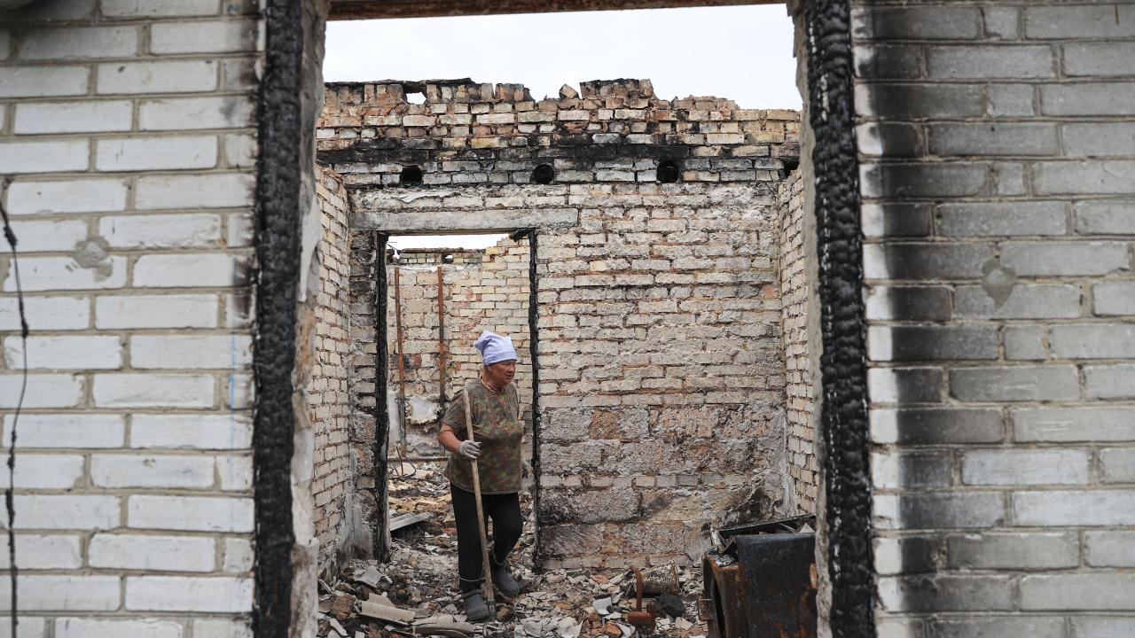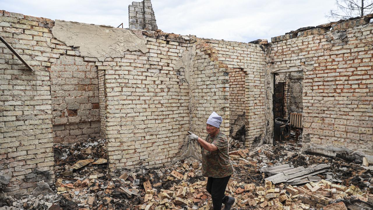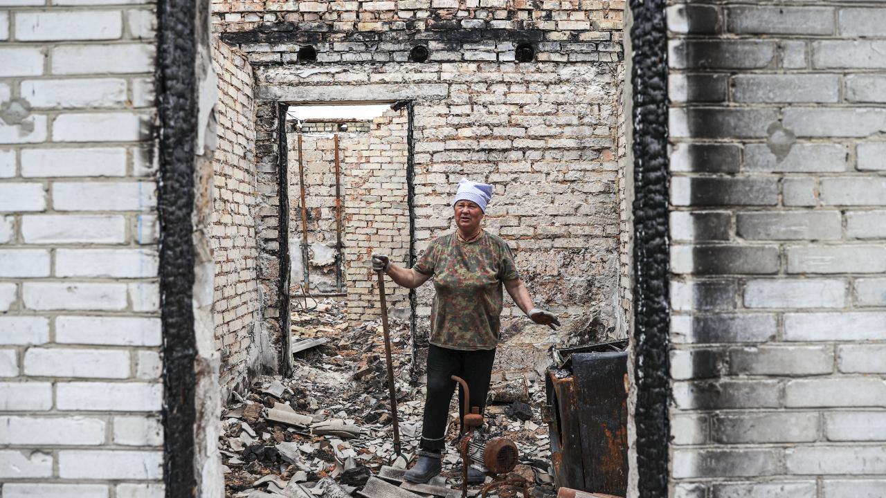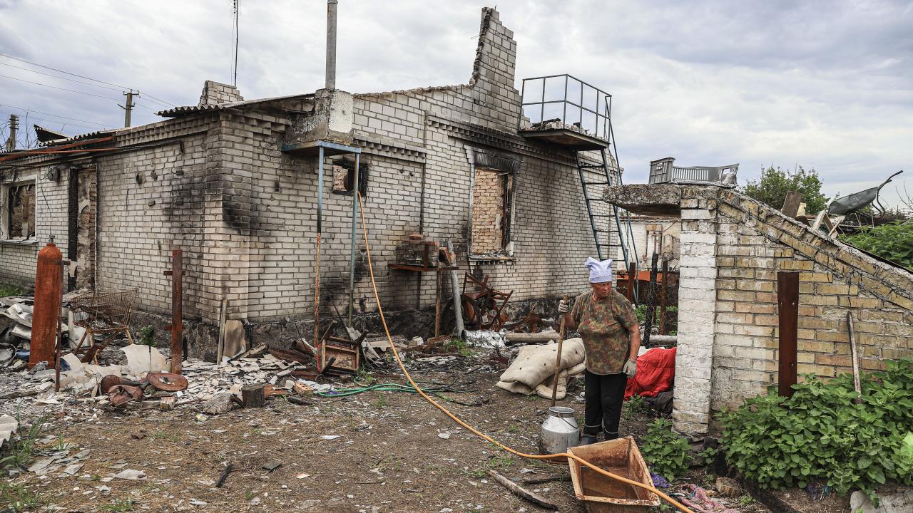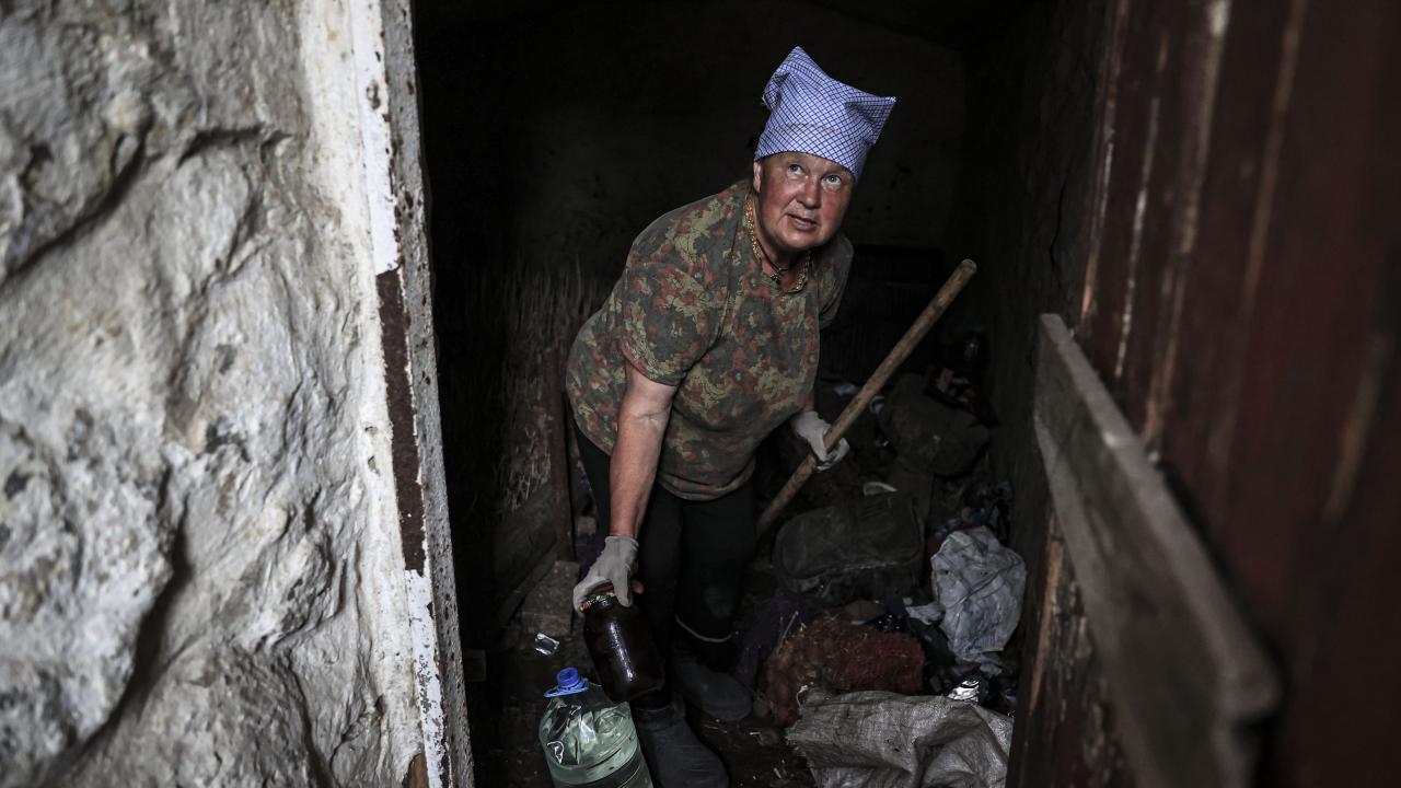 Ukrayna'nın başkenti Kiev bölgesinde bulunan ve Rusya'nın saldırıları sonucu ağır hasar gören Zahaltsi köyünde evini ve çiftliğini kaybeden Lyudmila Lovk, haftalardır enkaz alanını terk etmiyor.