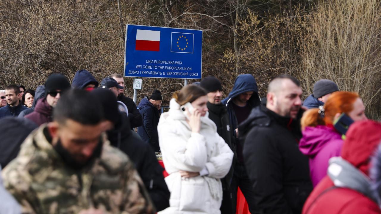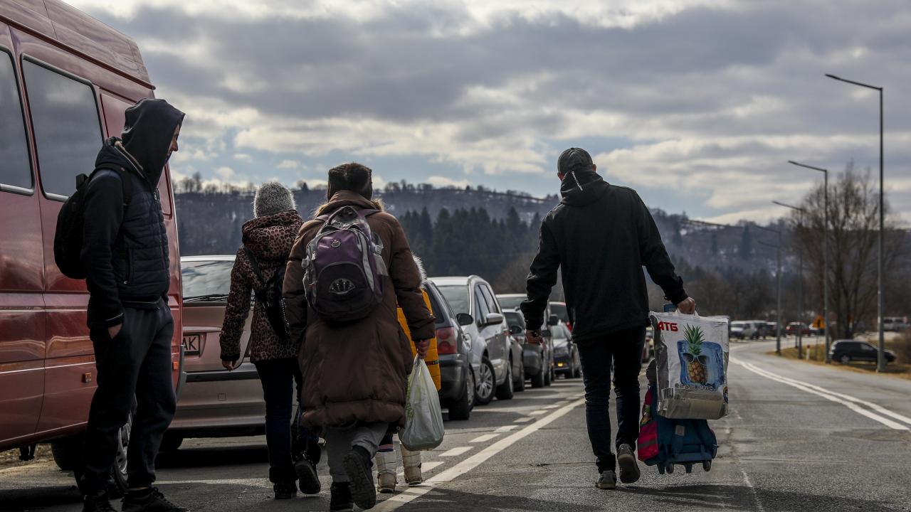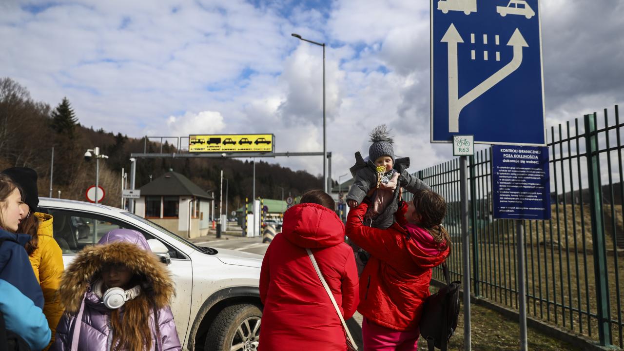 Rusya'nın Ukrayna'ya saldırıları sürerken ülkeden ayrıldıktan sonra Polonya'ya gelen Ukraynalı siviller, ülkenin Ukrayna sınırındaki Kroscienko bölgesindeki sınır kapısında görüntülendi. Güvenlik güçleri ise bölgede önlem aldı.